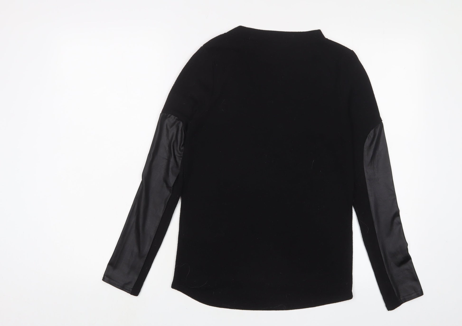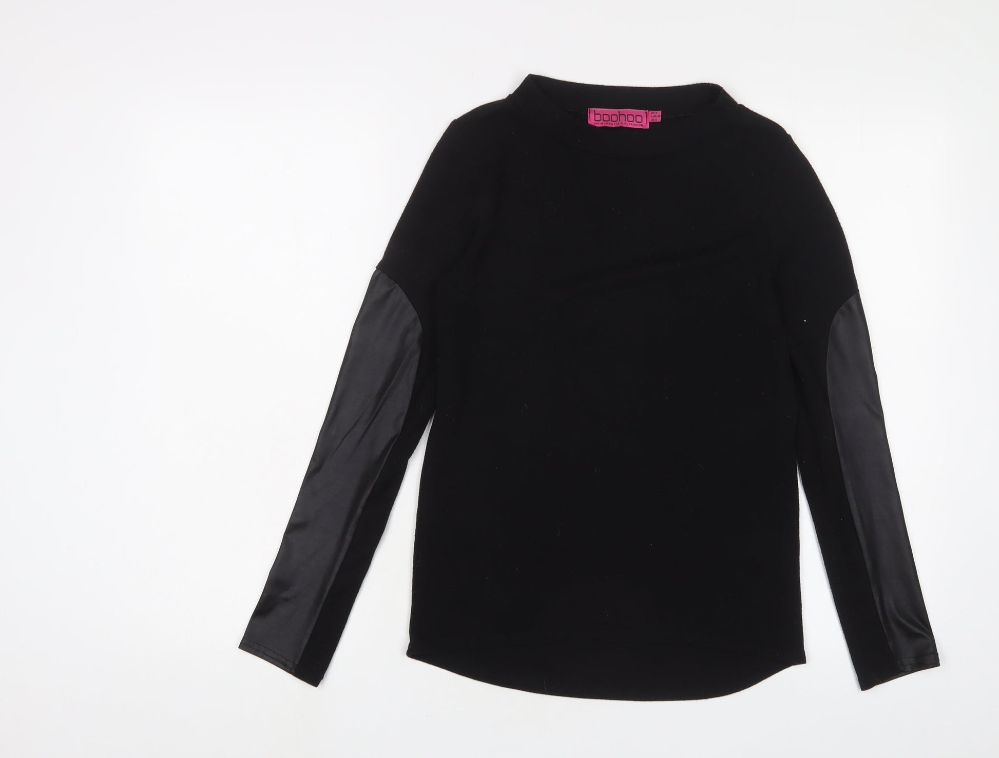 Boohoo Womens Black Polyester Basic T-Shirt Size 8 Crew Neck