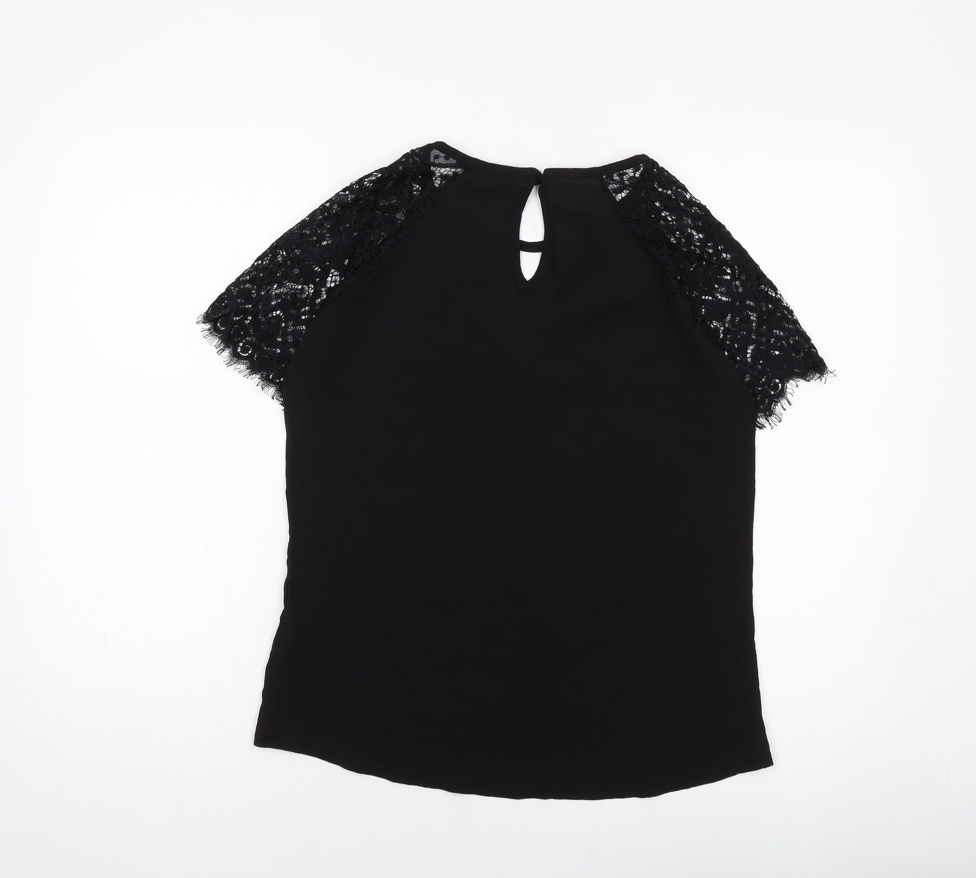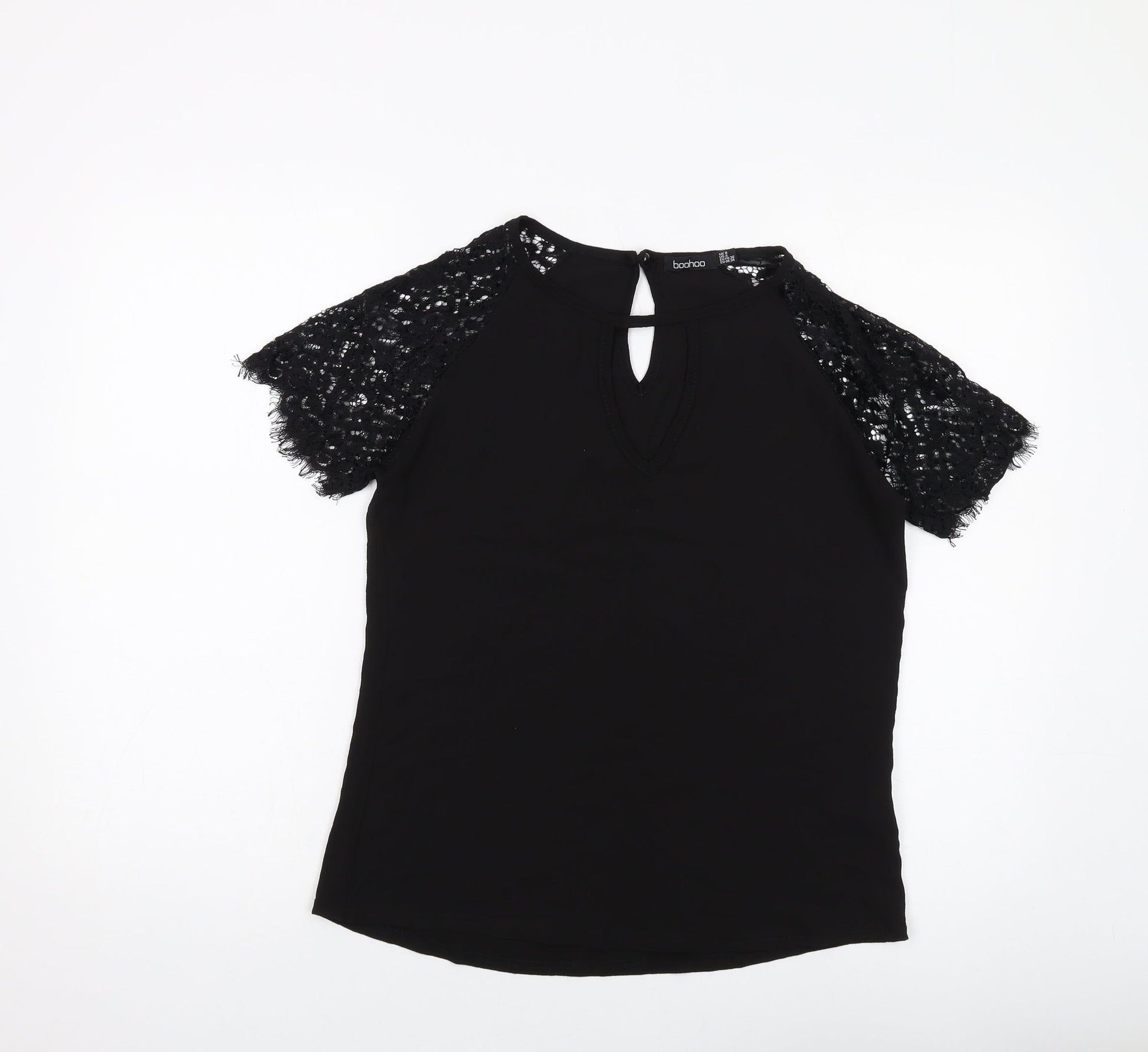 Boohoo Womens Black Polyester Basic T-Shirt Size 8 Round Neck
