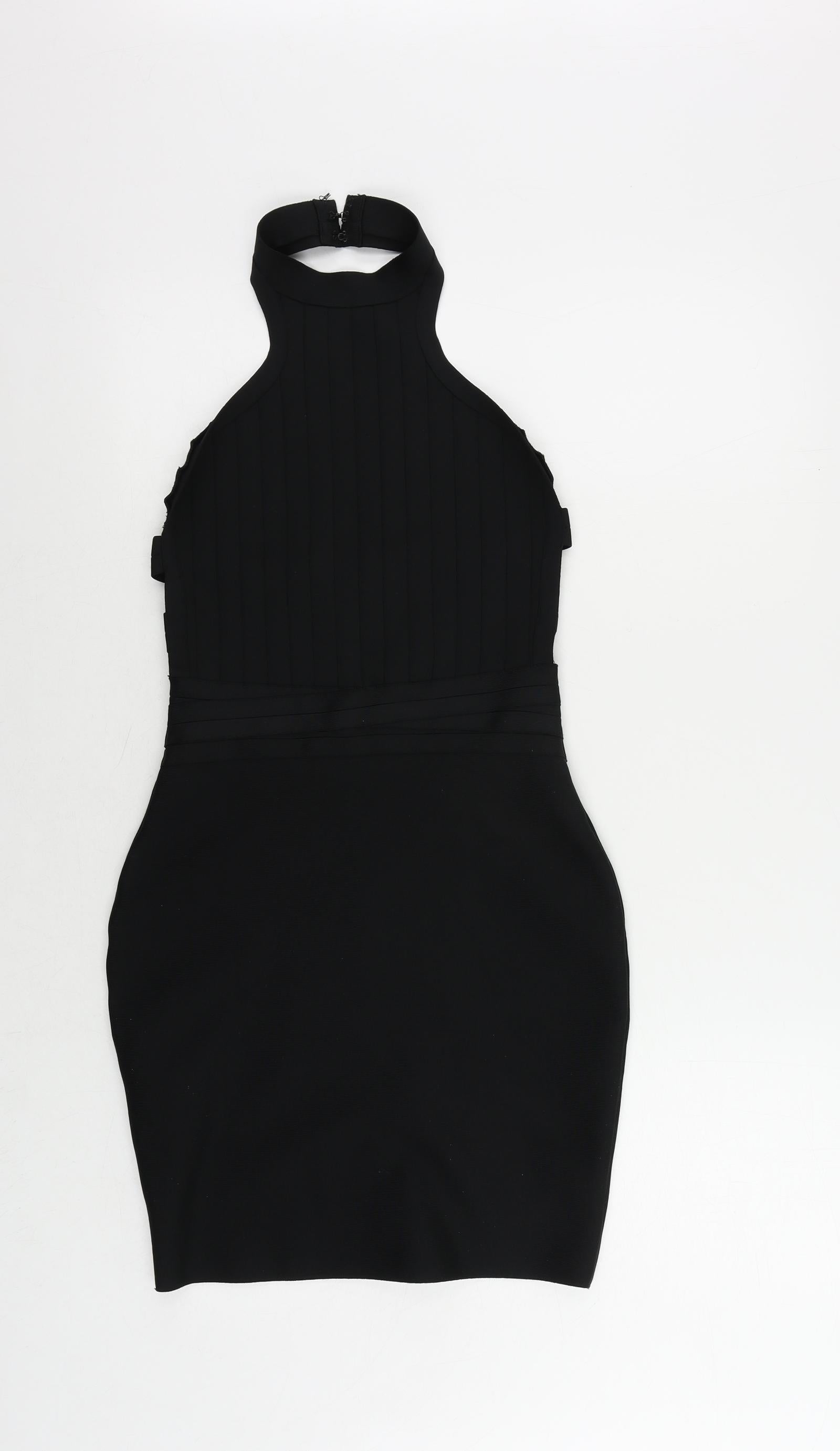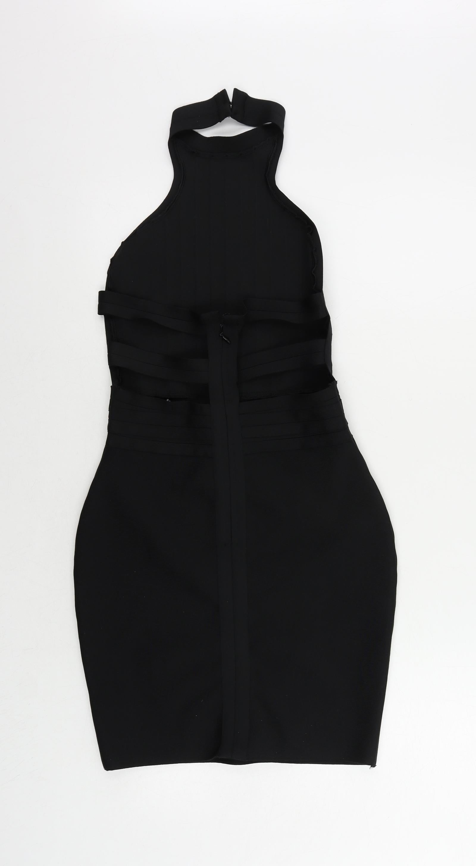 Boohoo Womens Black Polyester Bodycon Size 10 Halter Zip - Backless