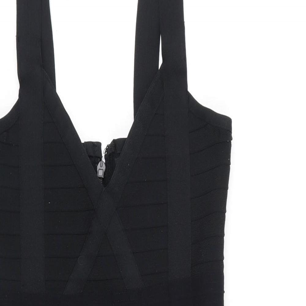 Boohoo Womens Black Polyester Bodycon Size 10 V-Neck Zip