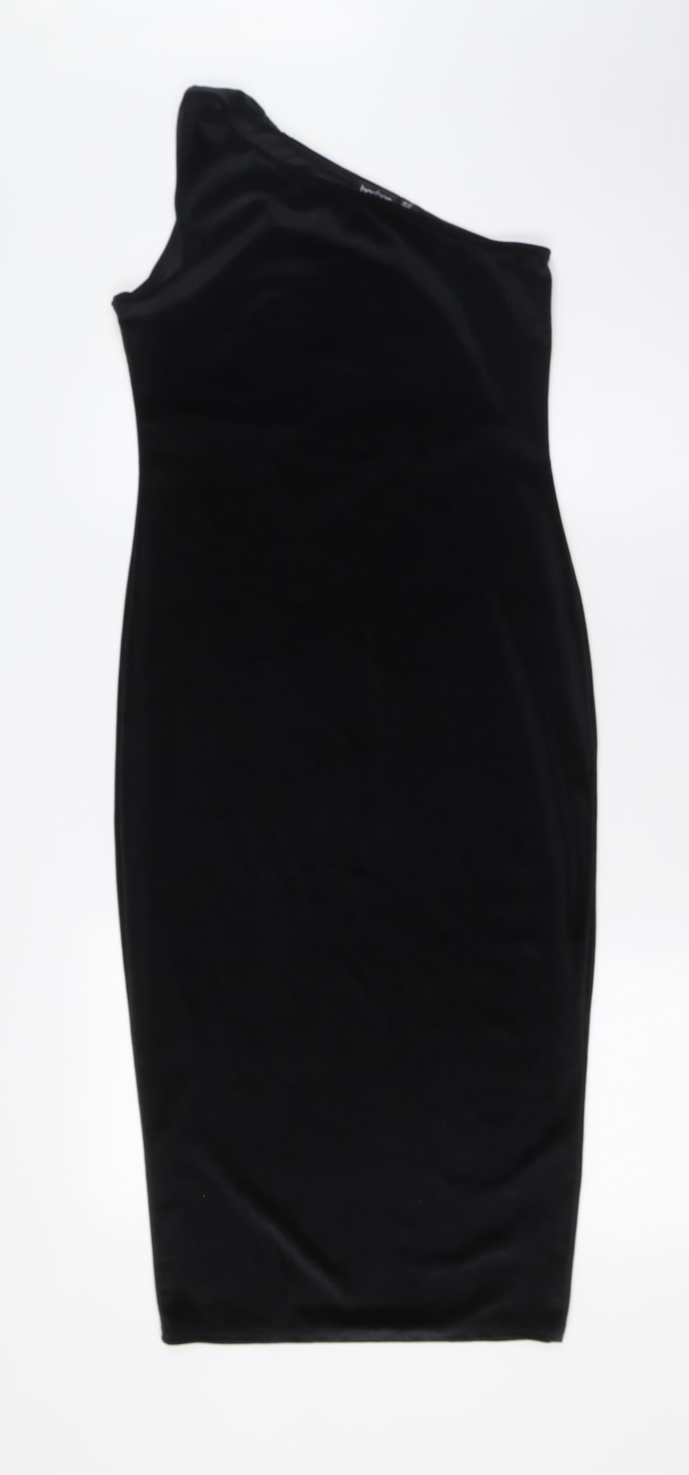 Boohoo Womens Black Polyester Bodycon Size 8 One Shoulder
