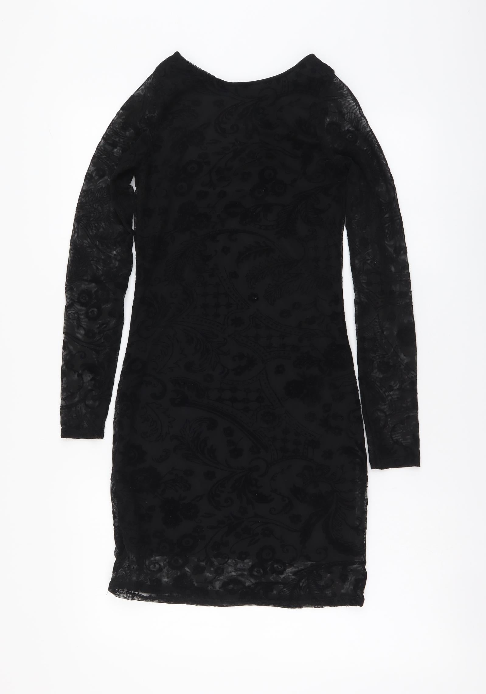 Boohoo Womens Black Polyester Bodycon Size 8 Round Neck Pullover