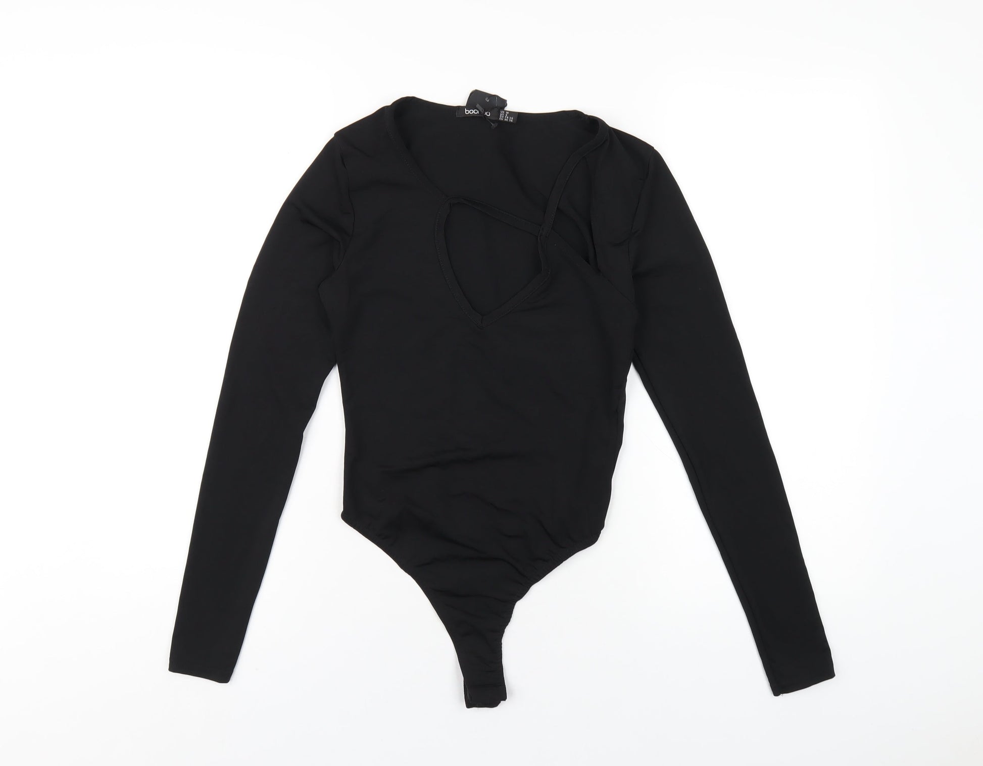 Boohoo Womens Black Polyester Bodysuit One-Piece Size 10 Snap