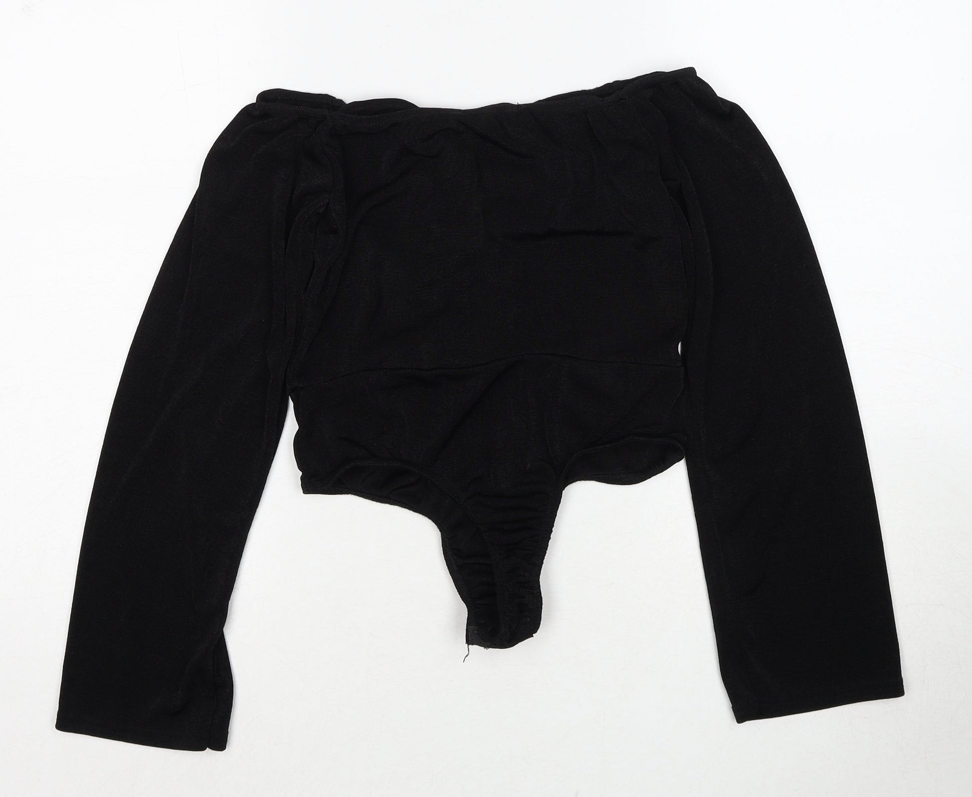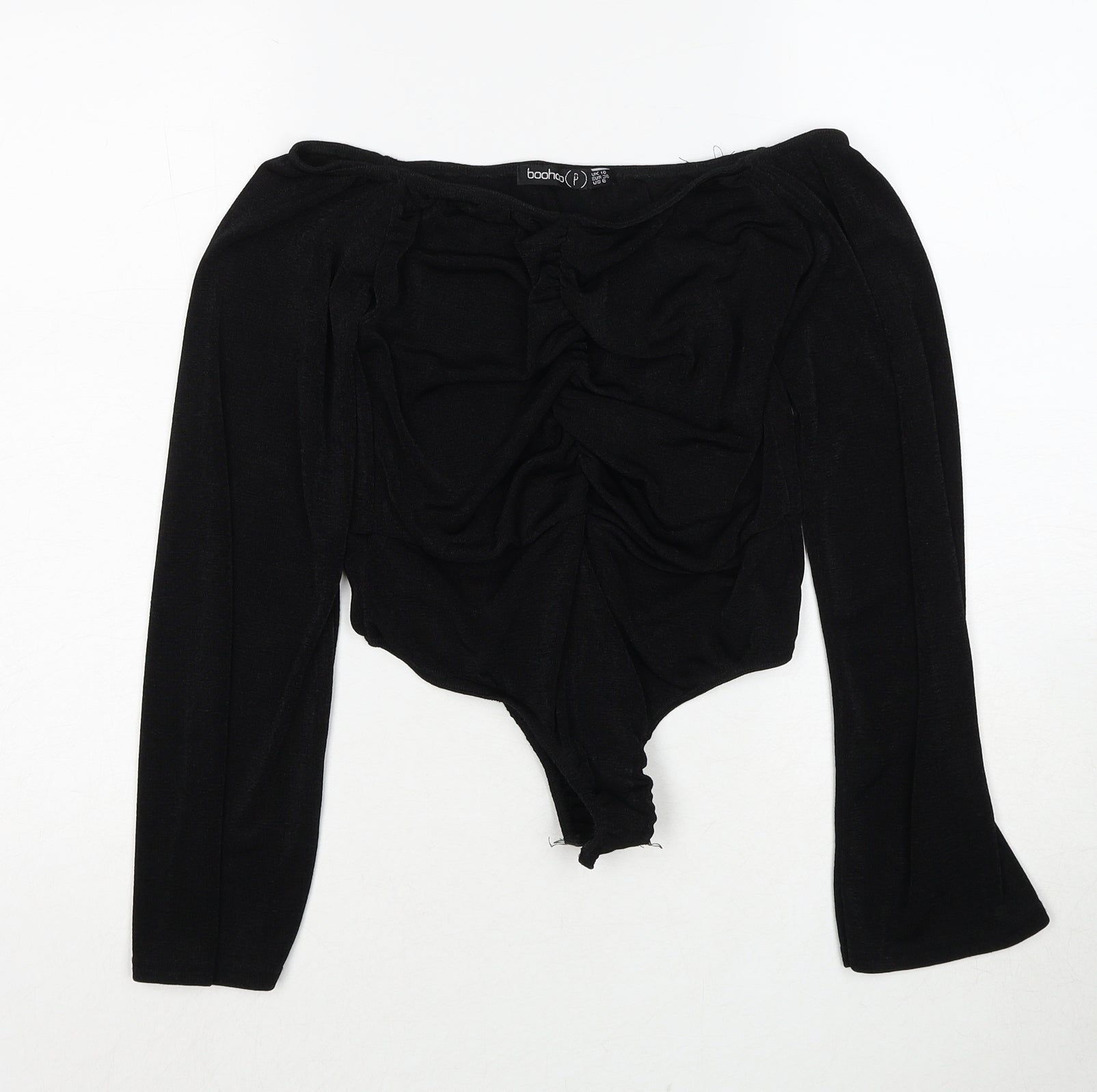 Boohoo Womens Black Polyester Bodysuit One-Piece Size 10 Snap