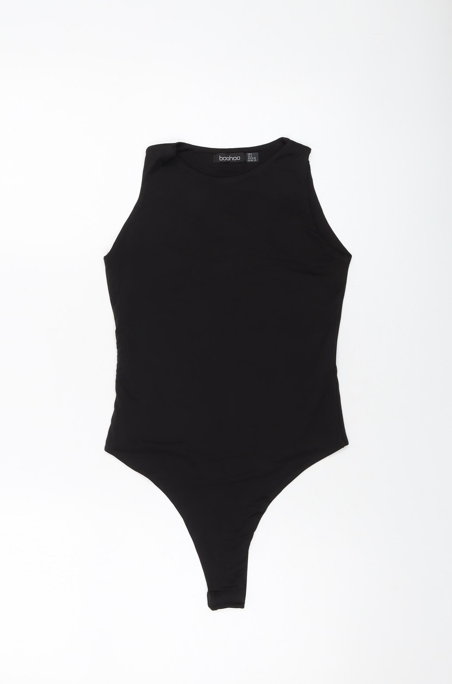 Boohoo Womens Black Polyester Bodysuit One-Piece Size 8 Snap
