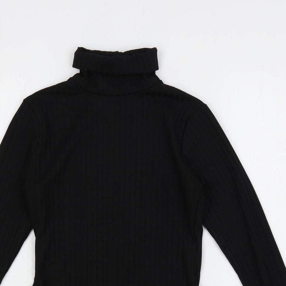 Boohoo Womens Black Polyester Bodysuit One-Piece Size 8 Snap - Ribbed