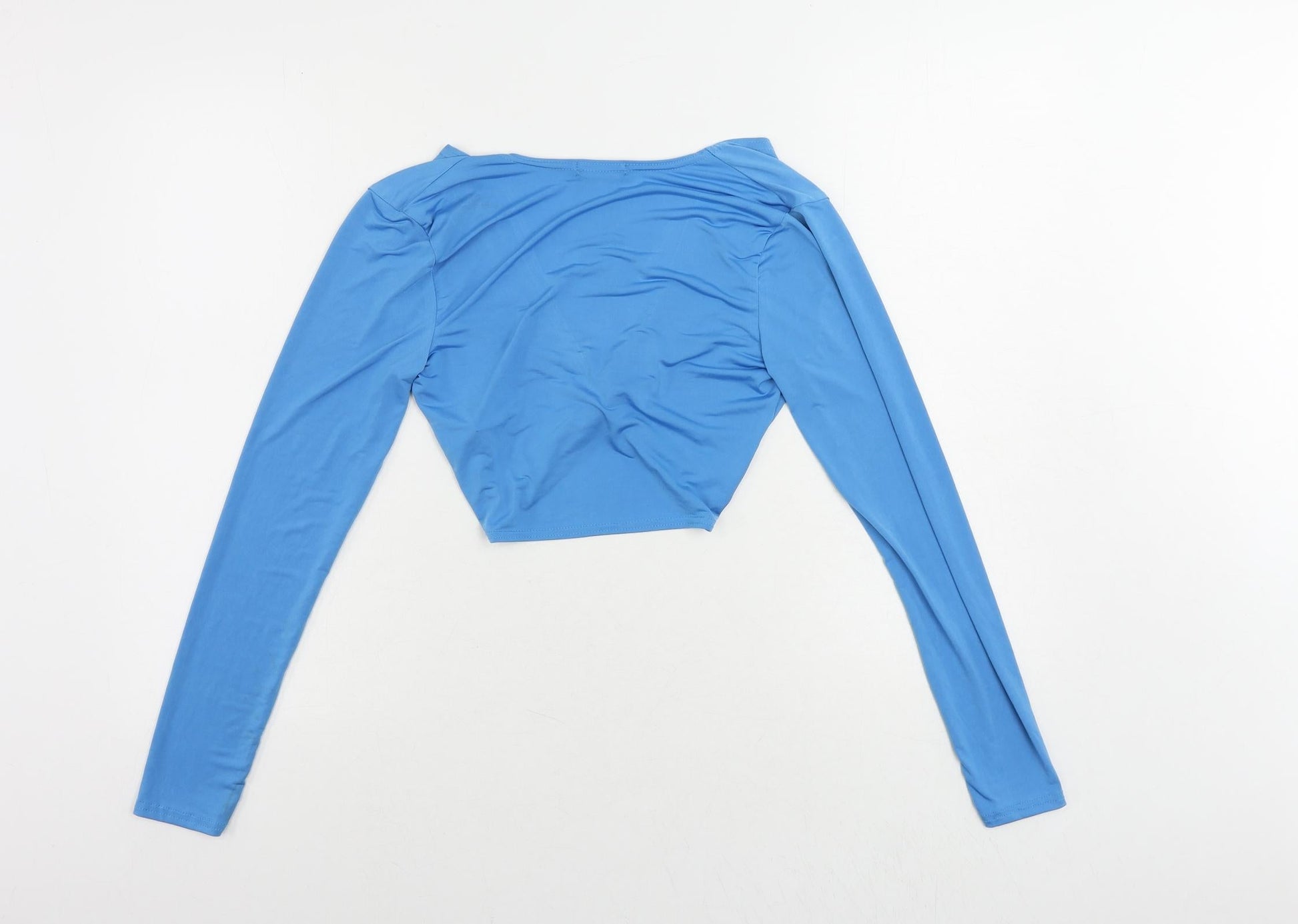 Boohoo Womens Black Polyester Cropped Button-Up Size 10 V-Neck