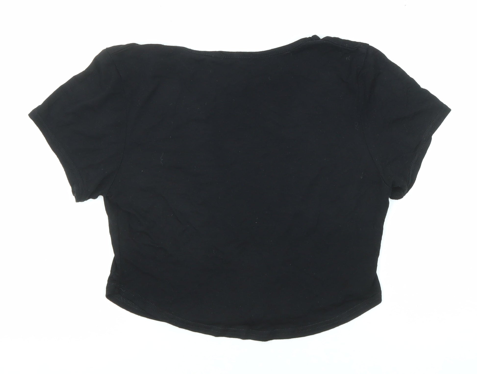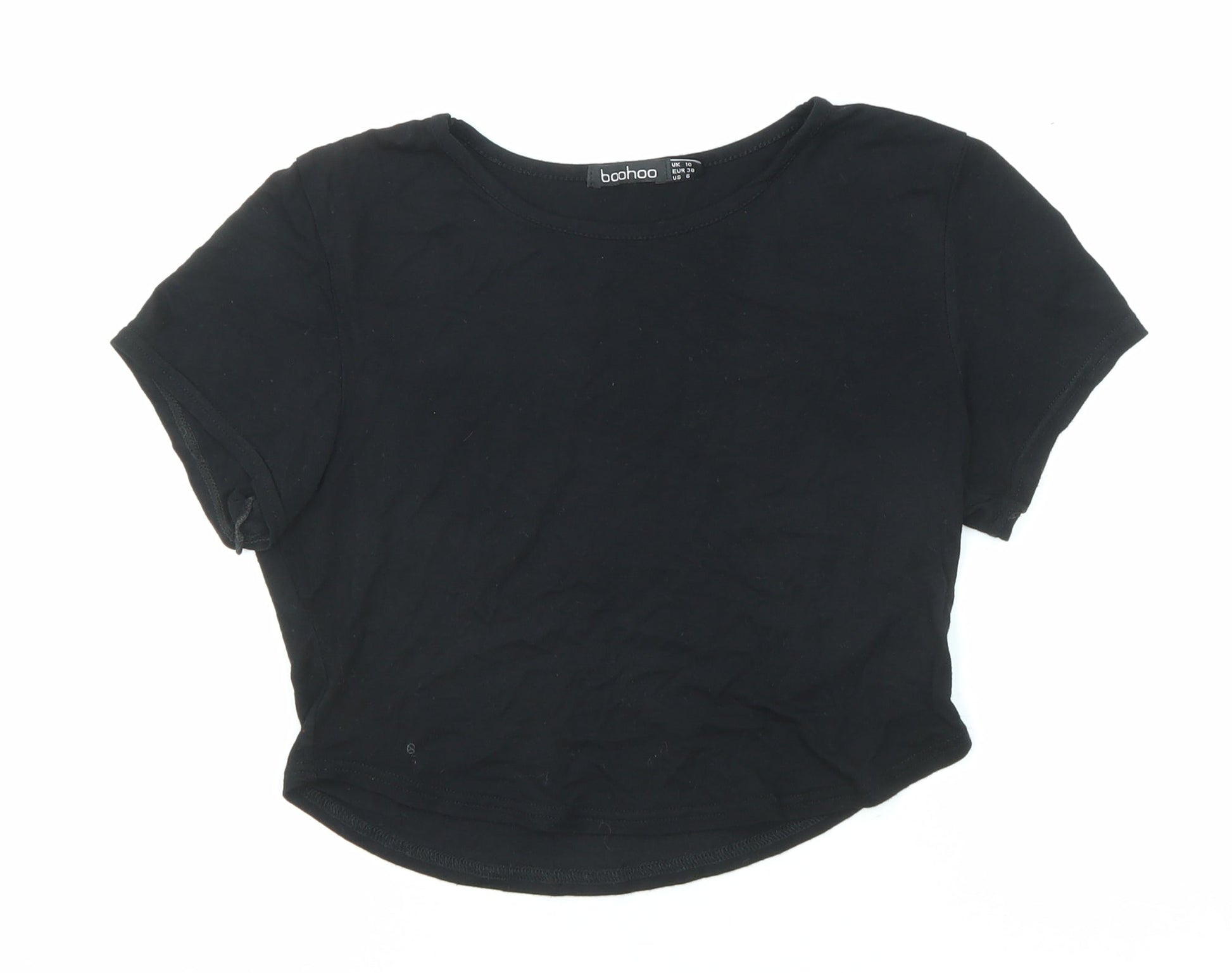 Boohoo Womens Black Polyester Cropped T-Shirt Size 10 Round Neck