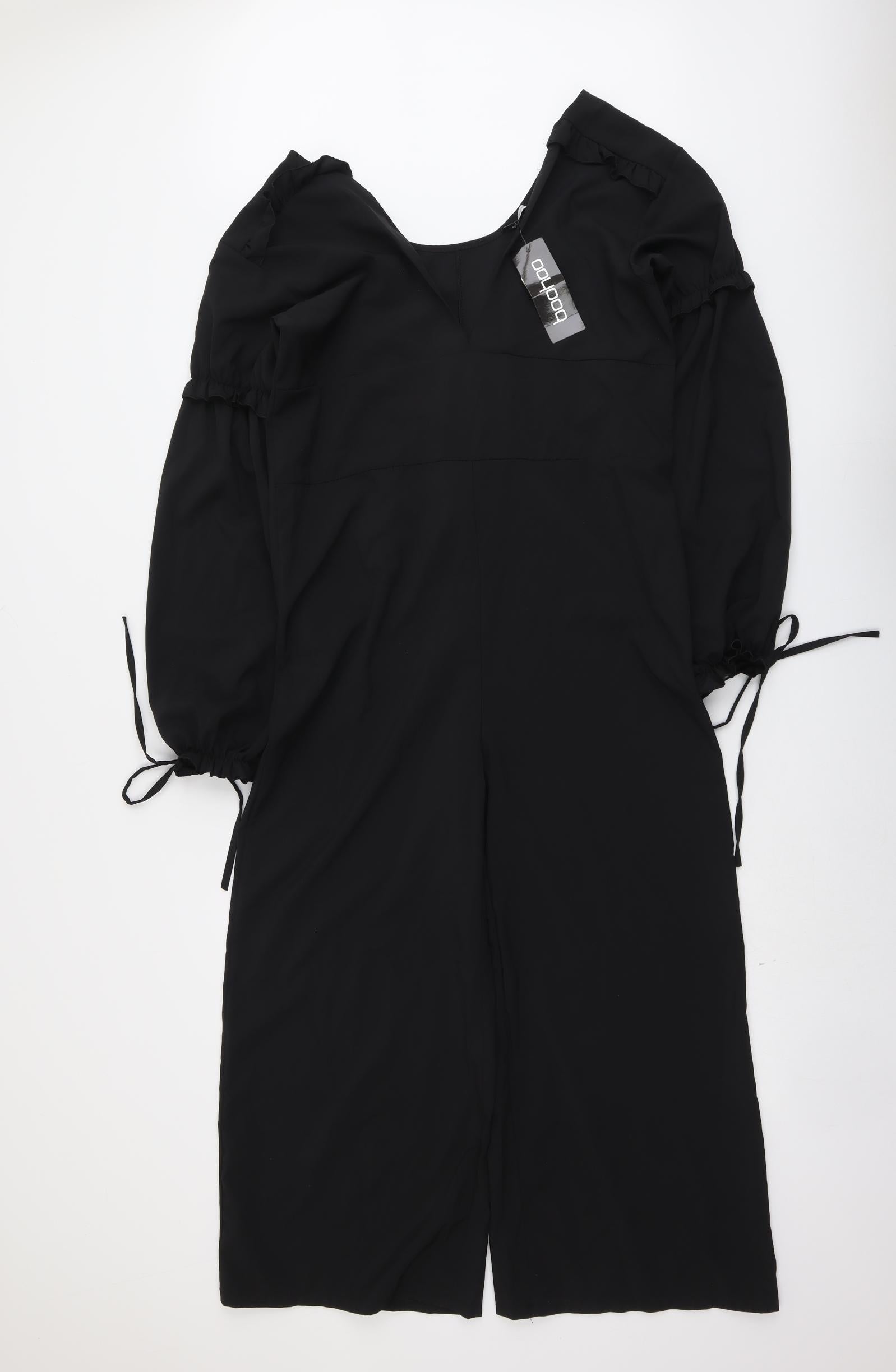 Boohoo Womens Black Polyester Jumpsuit One-Piece Size 8 Pullover - Tie Sleeve Detail