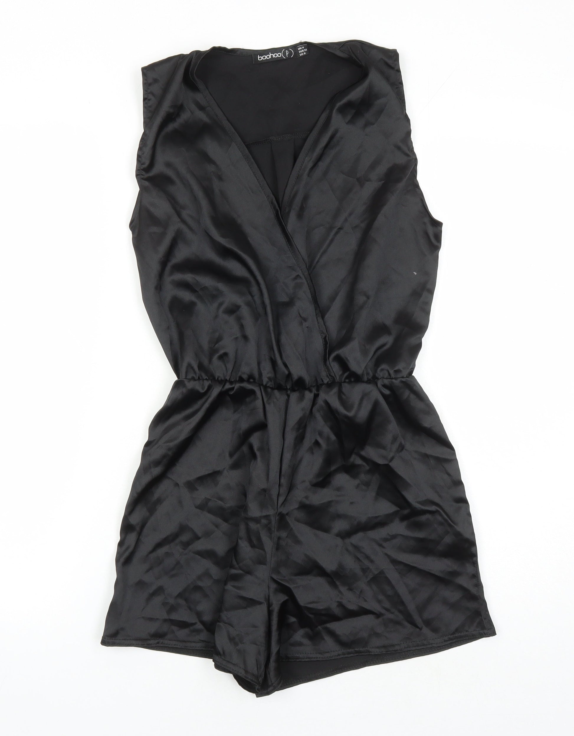 Boohoo Womens Black Polyester Playsuit One-Piece Size 4 L3 in Pullover