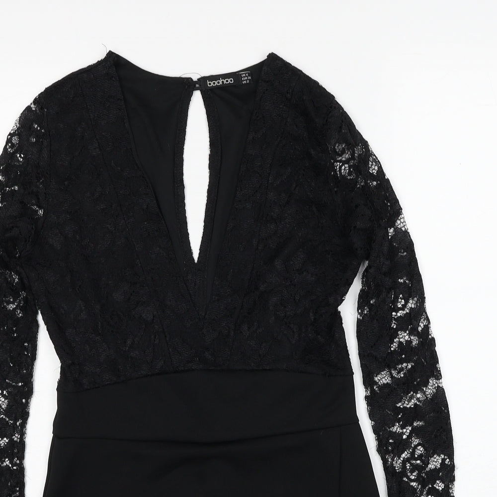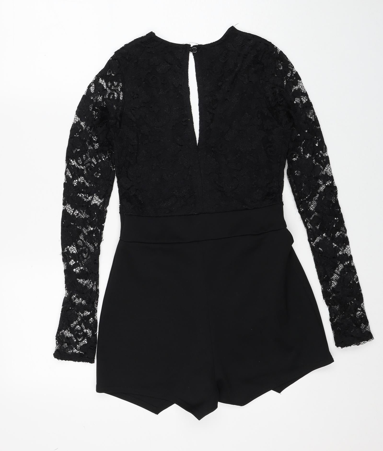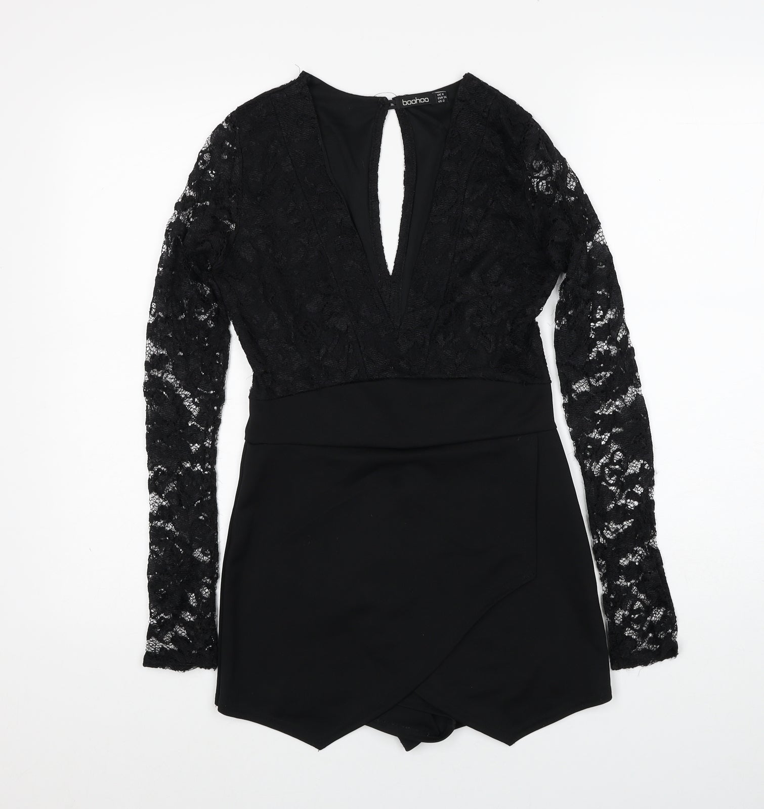 Boohoo Womens Black Polyester Playsuit One-Piece Size 6 Button