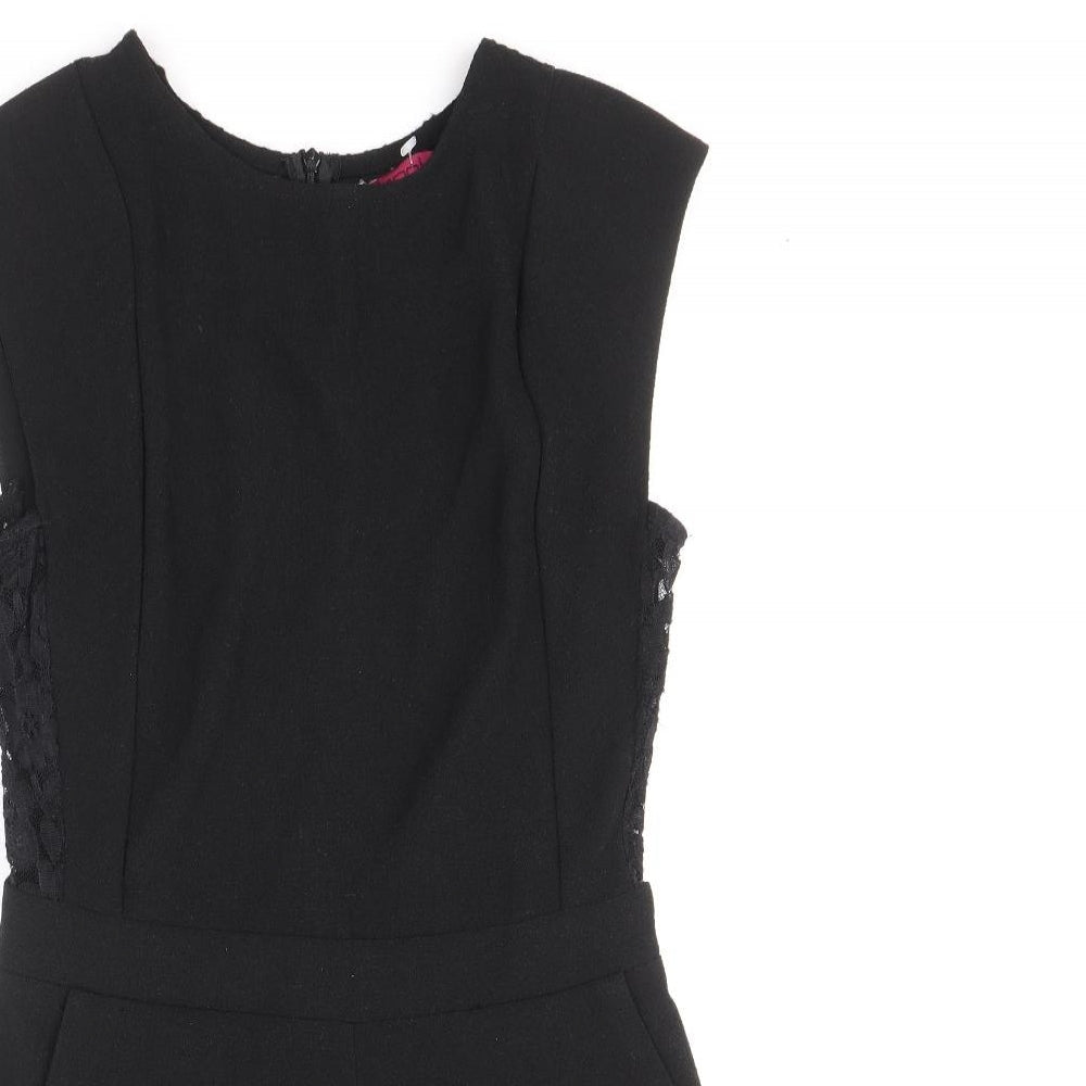 Boohoo Womens Black Polyester Playsuit One-Piece Size 6 Zip - Lace Detail