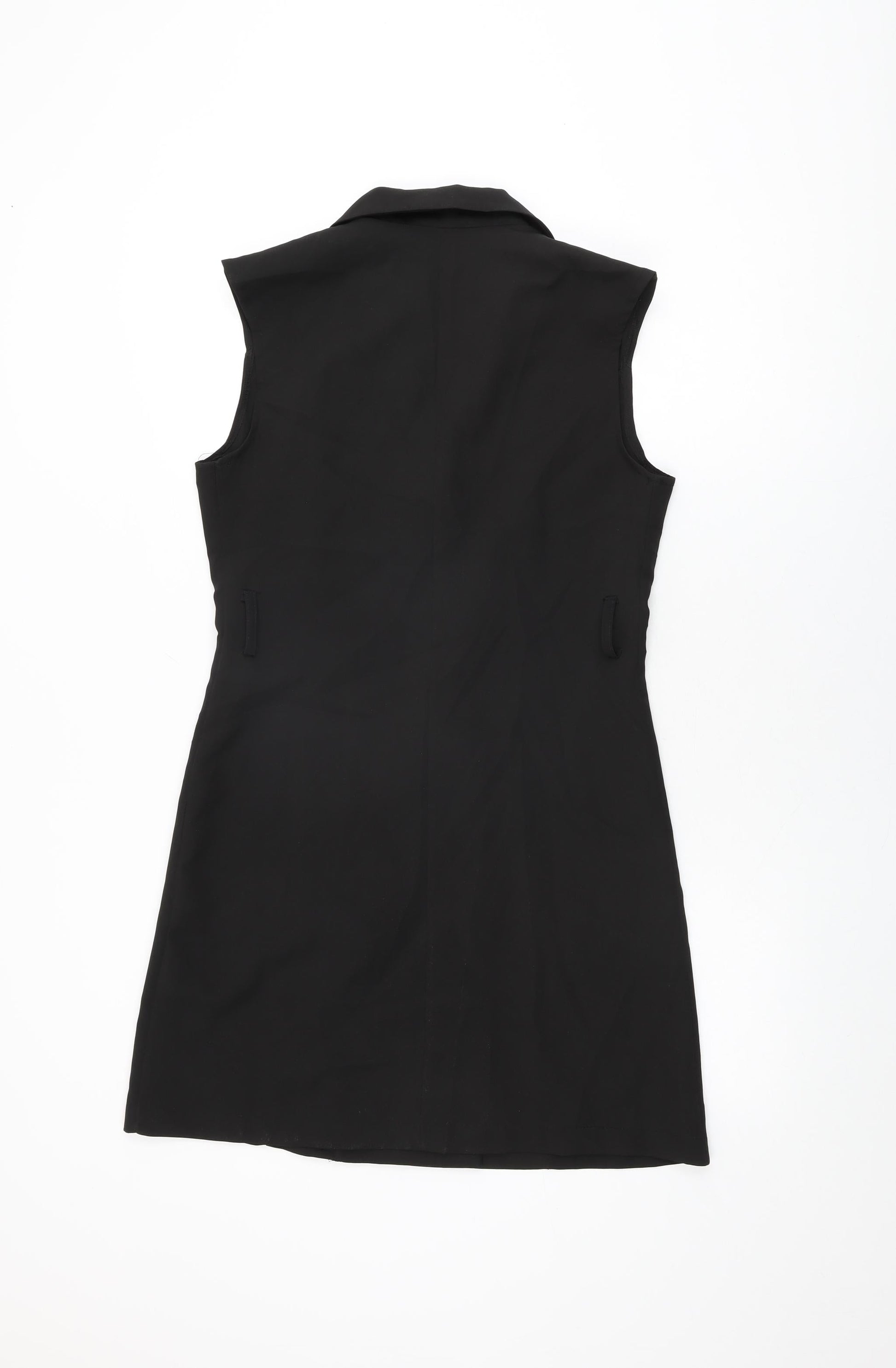 Boohoo Womens Black Polyester Shift Size 10 Collared Button