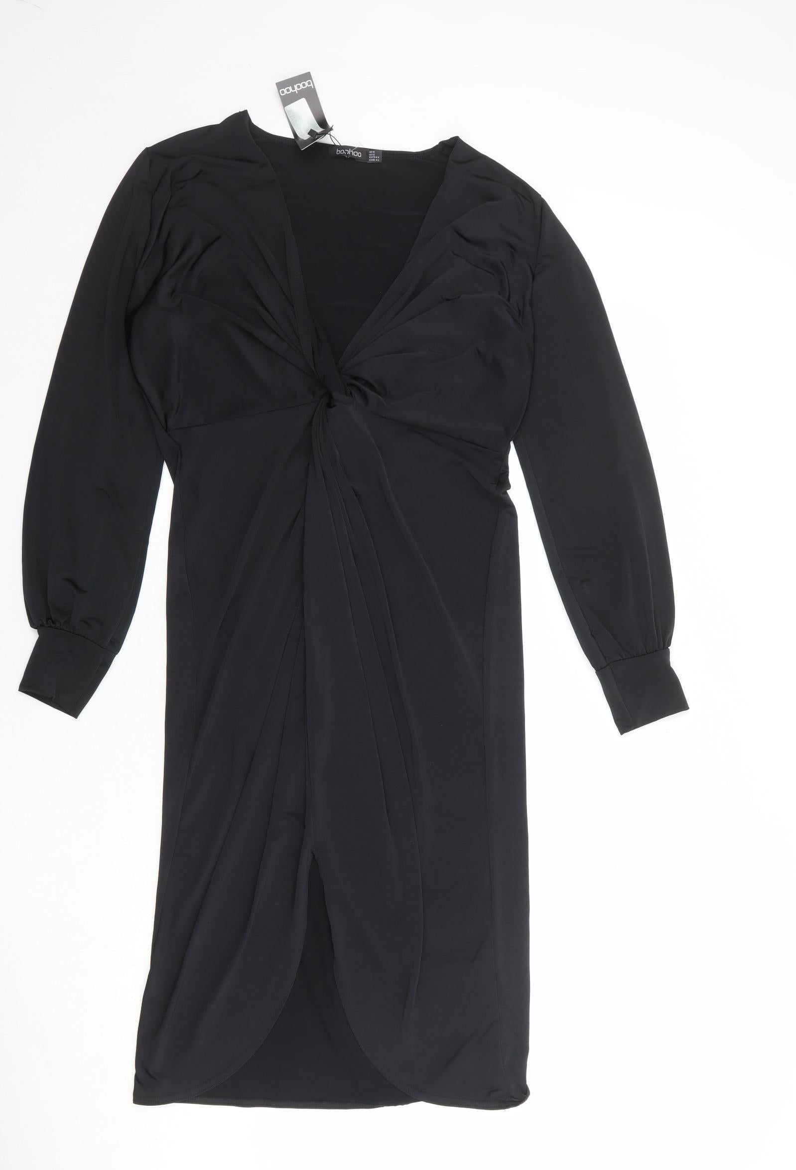 Boohoo Womens Black Polyester Shift Size 6 V-Neck Pullover