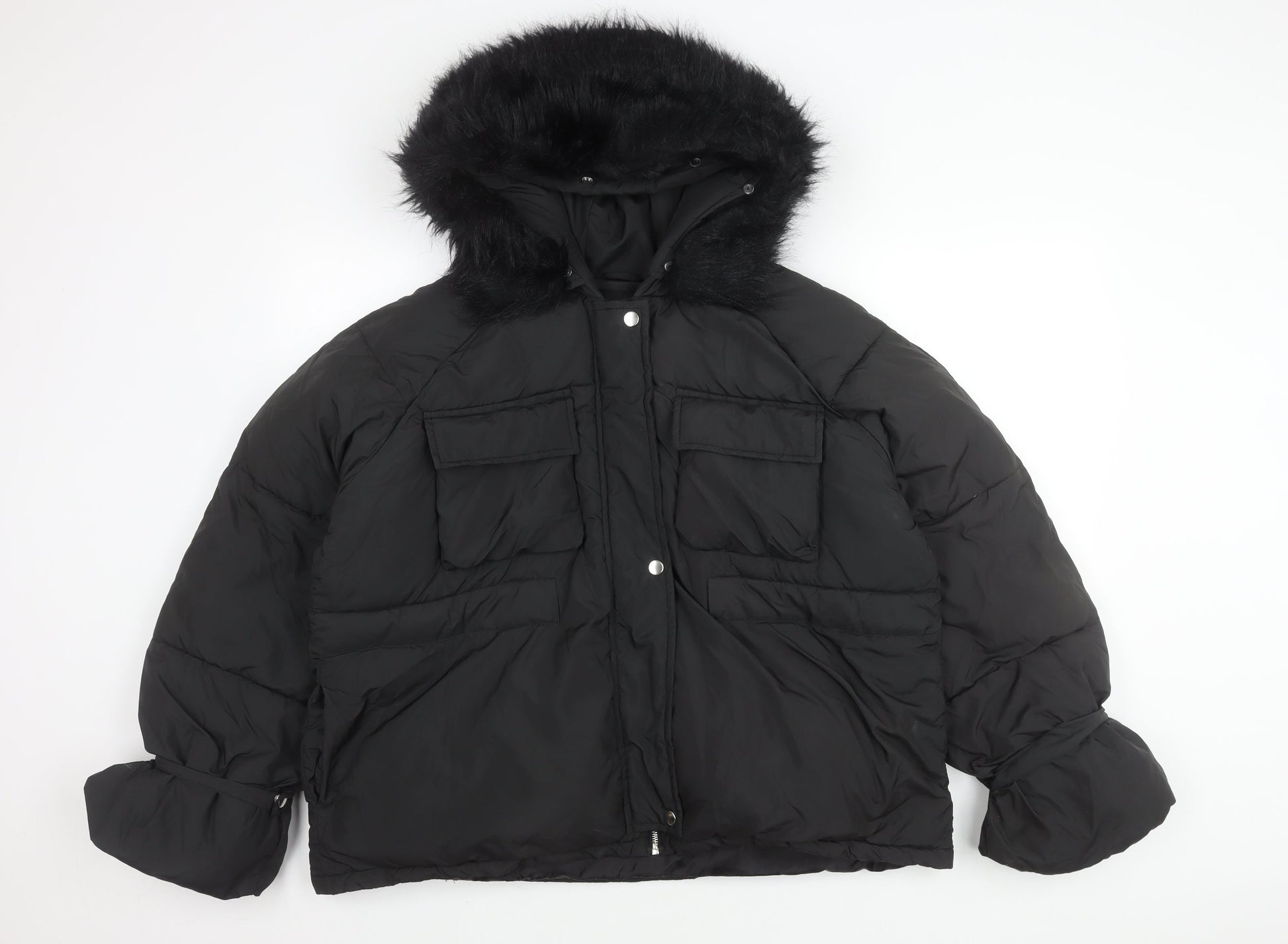 Boohoo Women's Black Puffer Jacket Size 14 - Winter Essential