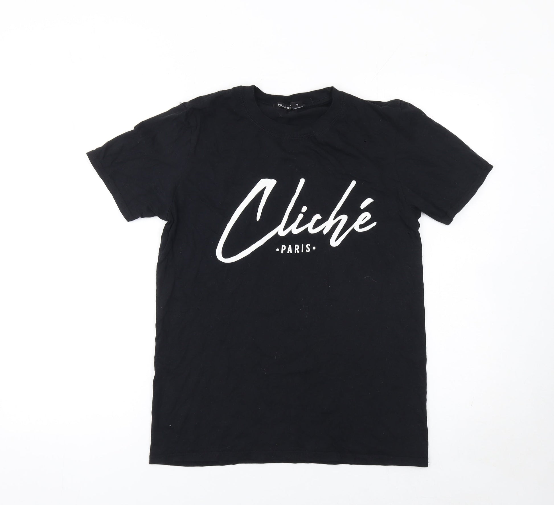 Boohoo Women's Black Regular Fit Paris Slogan Basic T-Shirt Size S