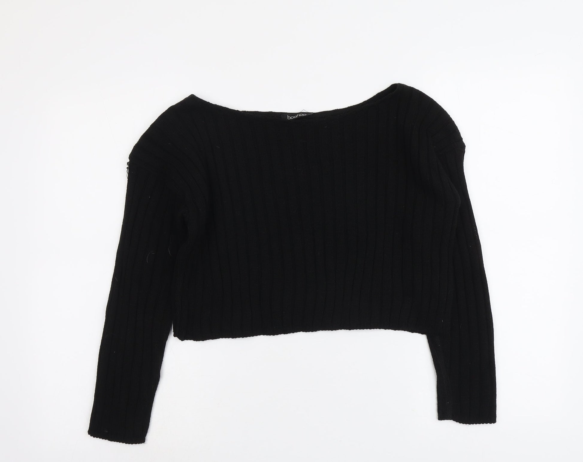Boohoo Womens Black Round Neck Acrylic Pullover Jumper Size L