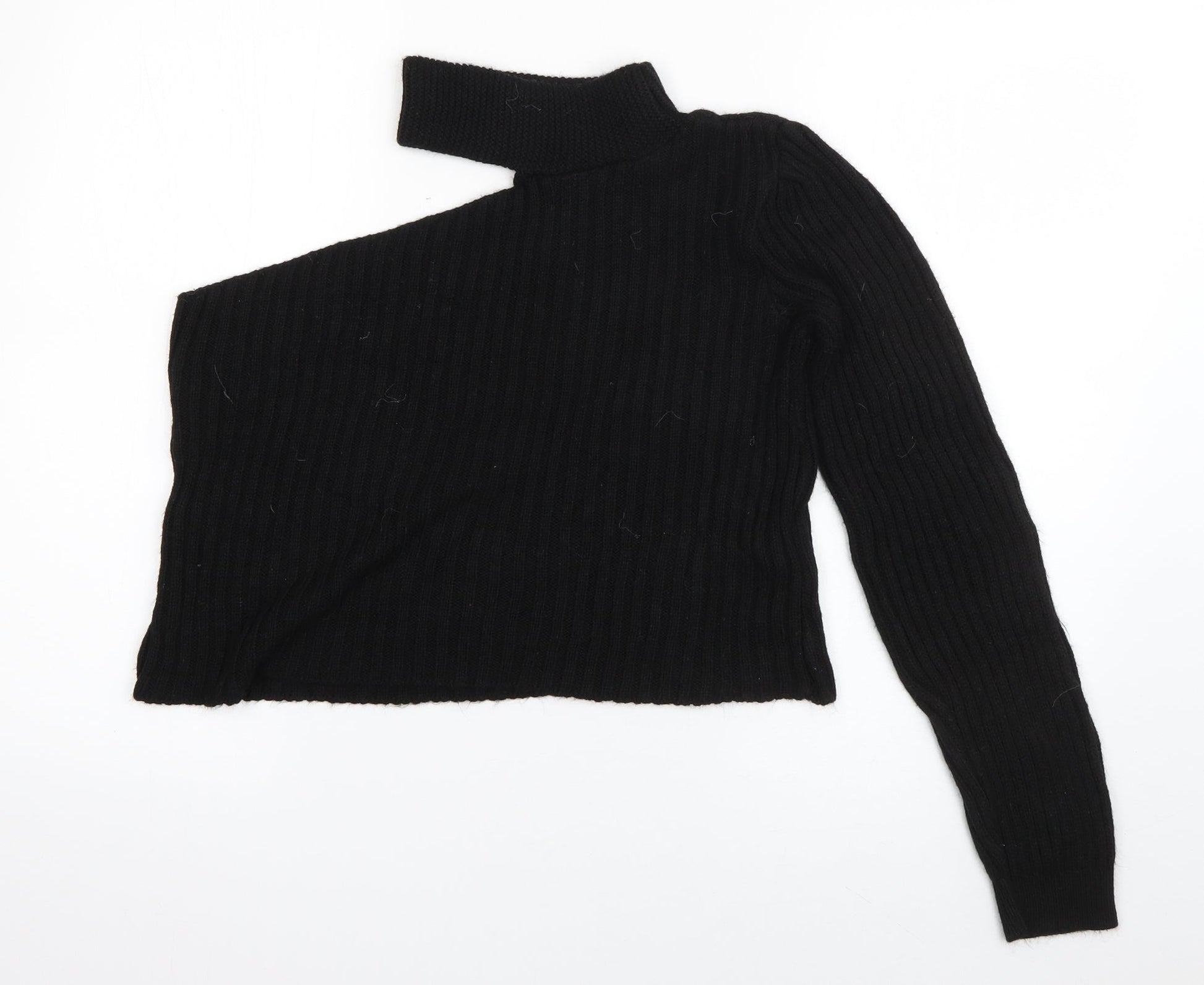 Boohoo Womens Black Round Neck Acrylic Pullover Jumper Size S