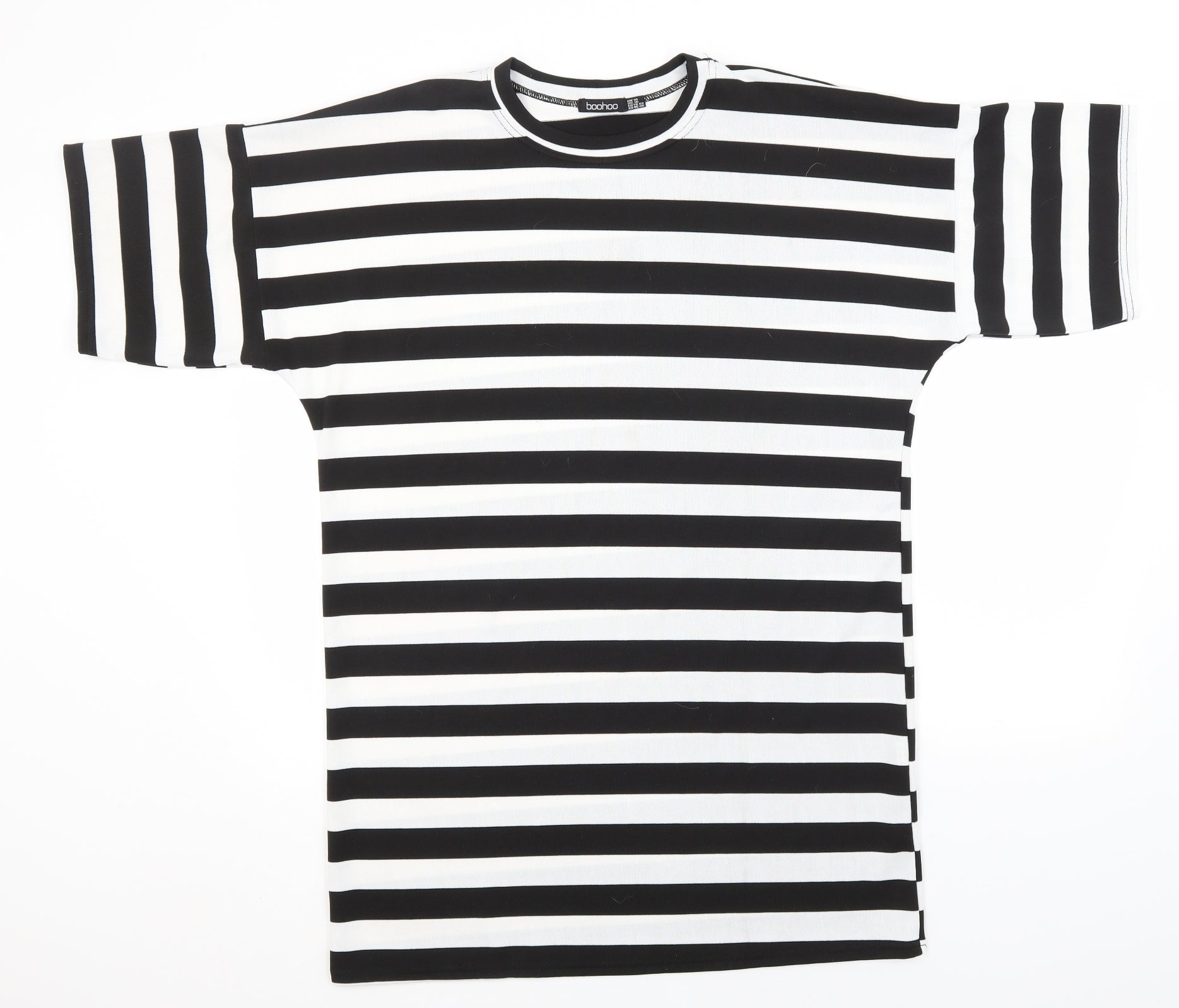 Boohoo Womens Black Round Neck Striped Polyester Pullover Jumper Size 14