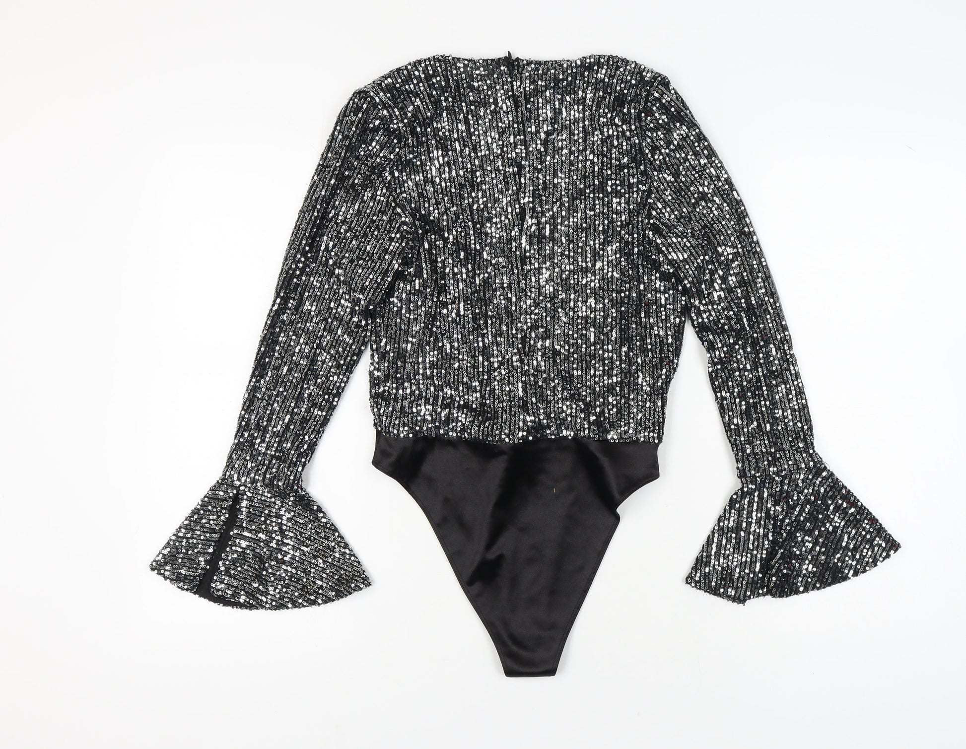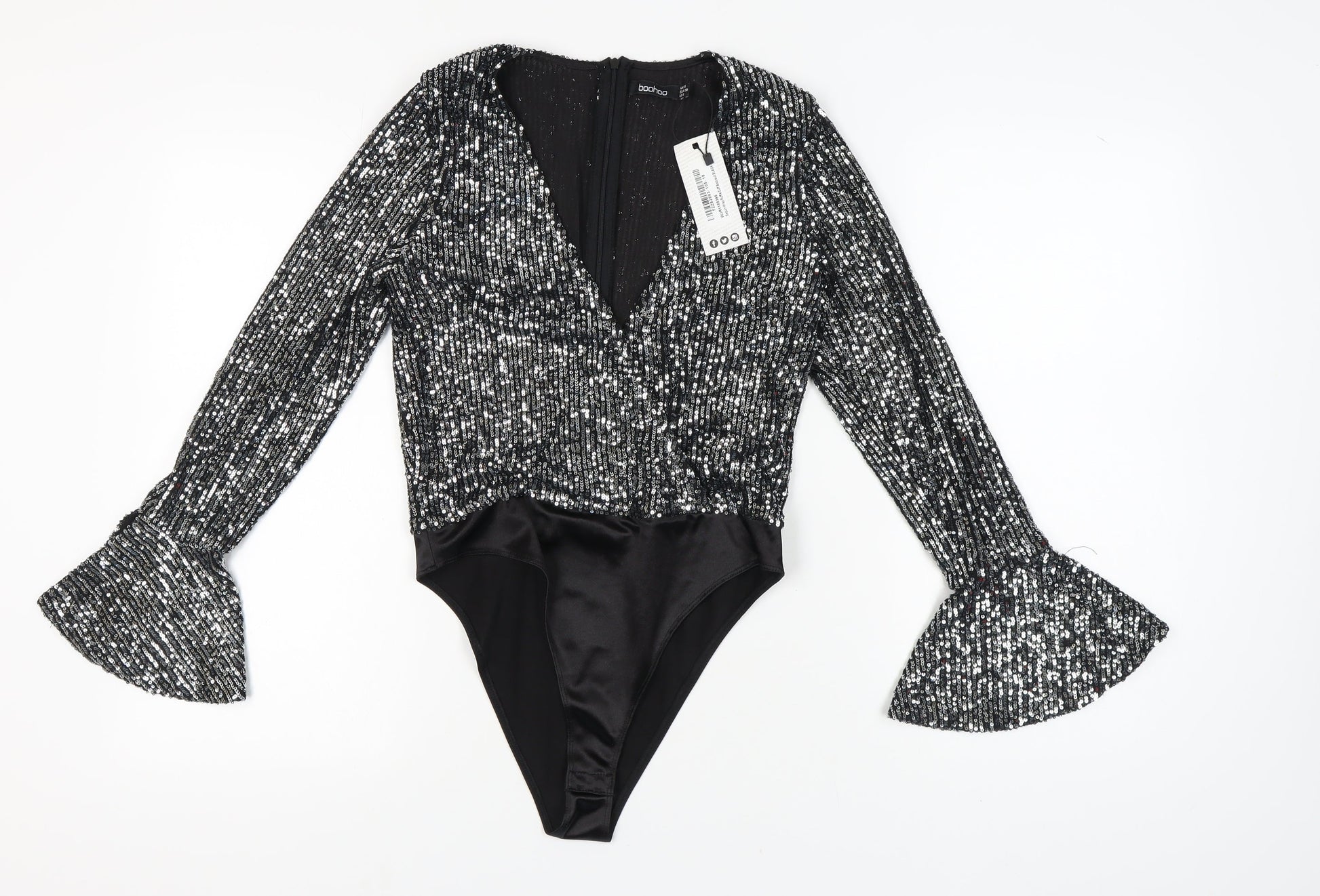 Boohoo Women's Black Sequin Bodysuit, Size 10, Party Vibe
