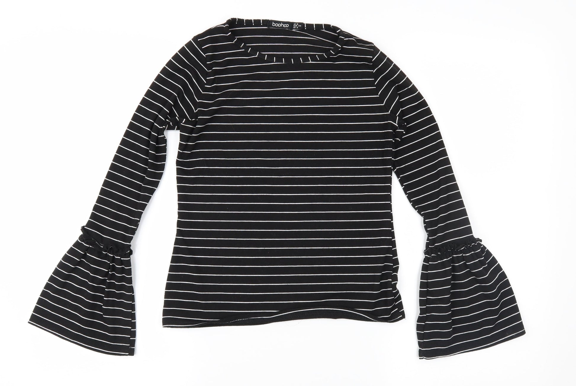 Boohoo Womens Black Striped Jersey Basic Blouse Size 6