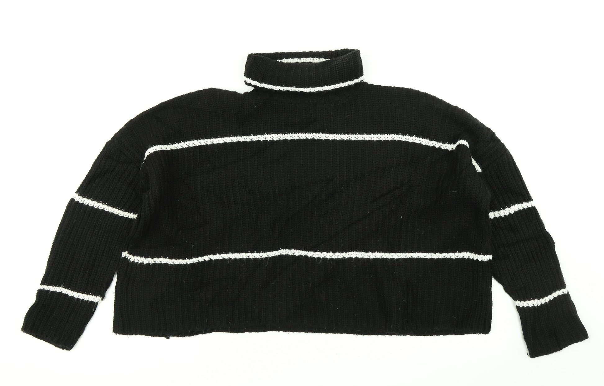 Boohoo Womens Black Striped Knit Pullover Jumper Size 10 - Cropped