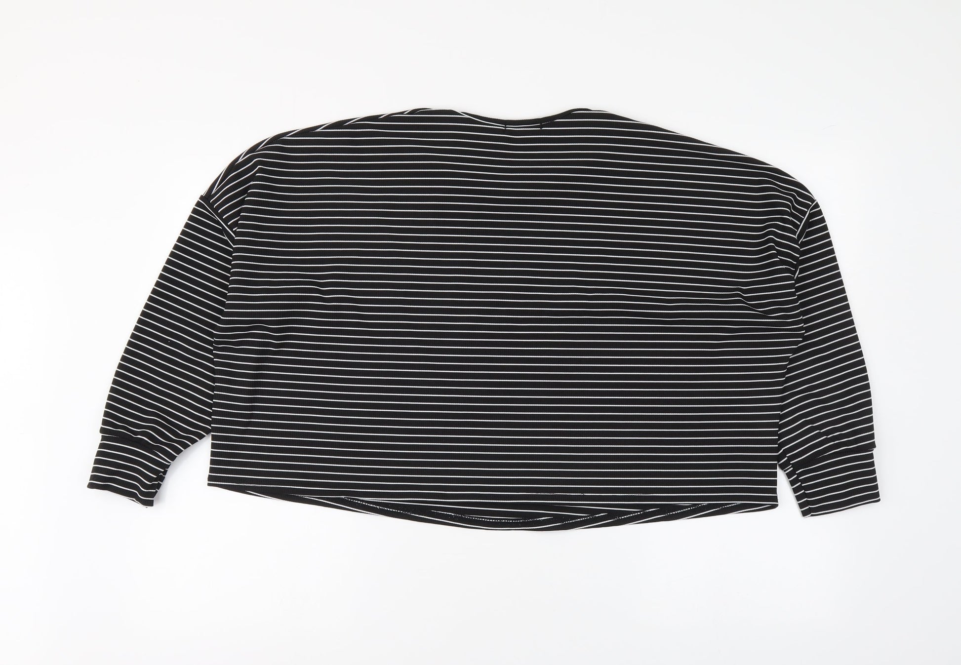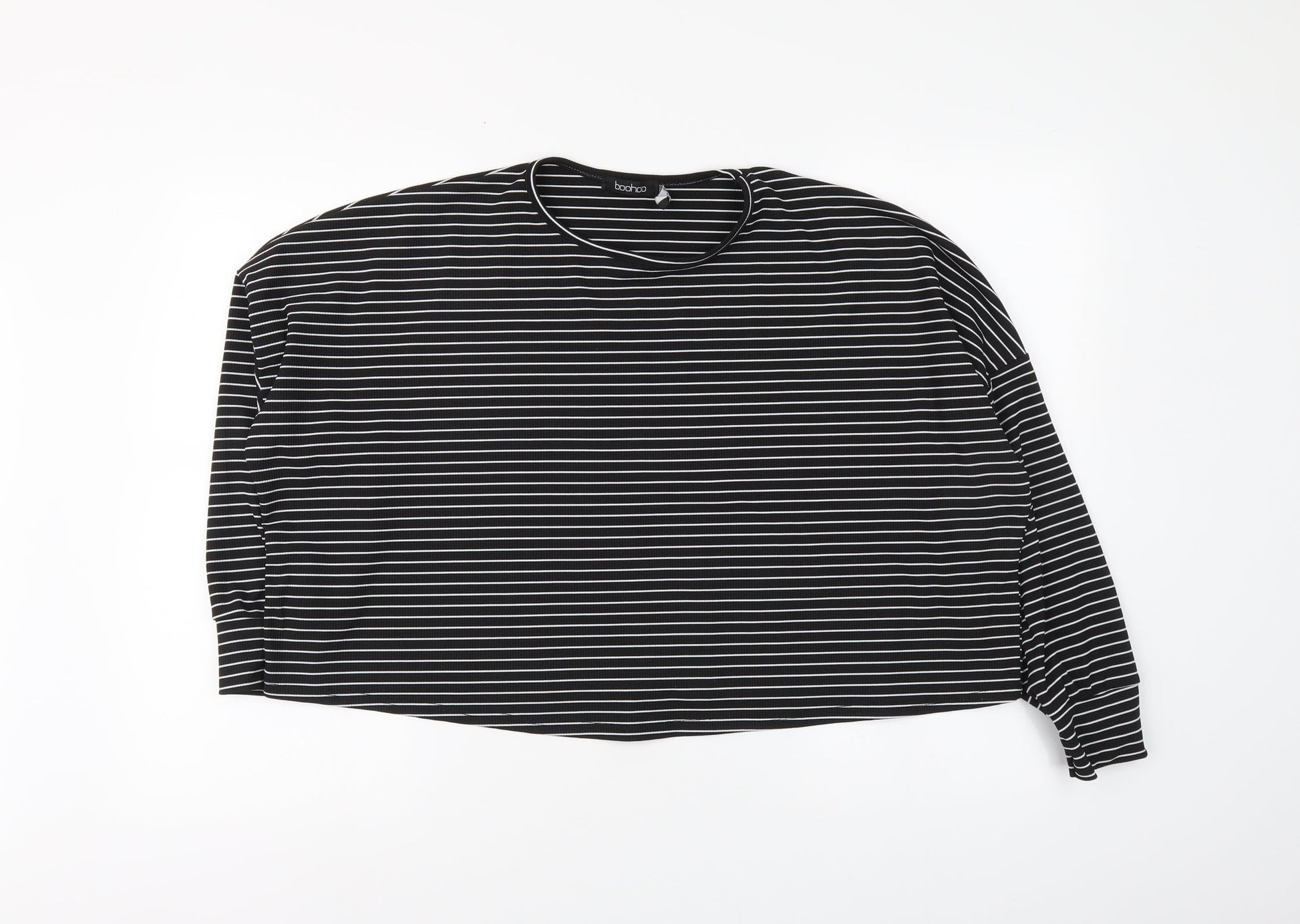 Boohoo Womens Black Striped Polyester Cropped Blouse Size 16 Round Neck