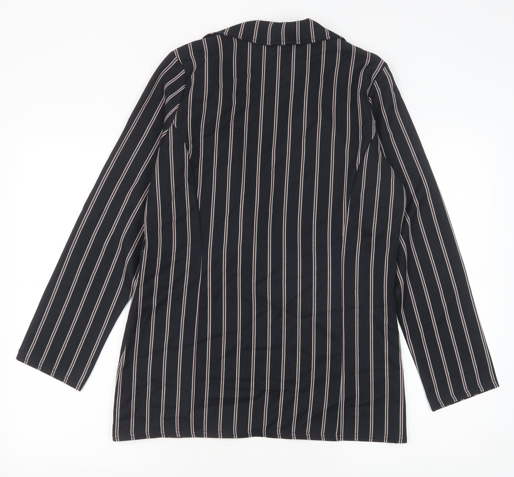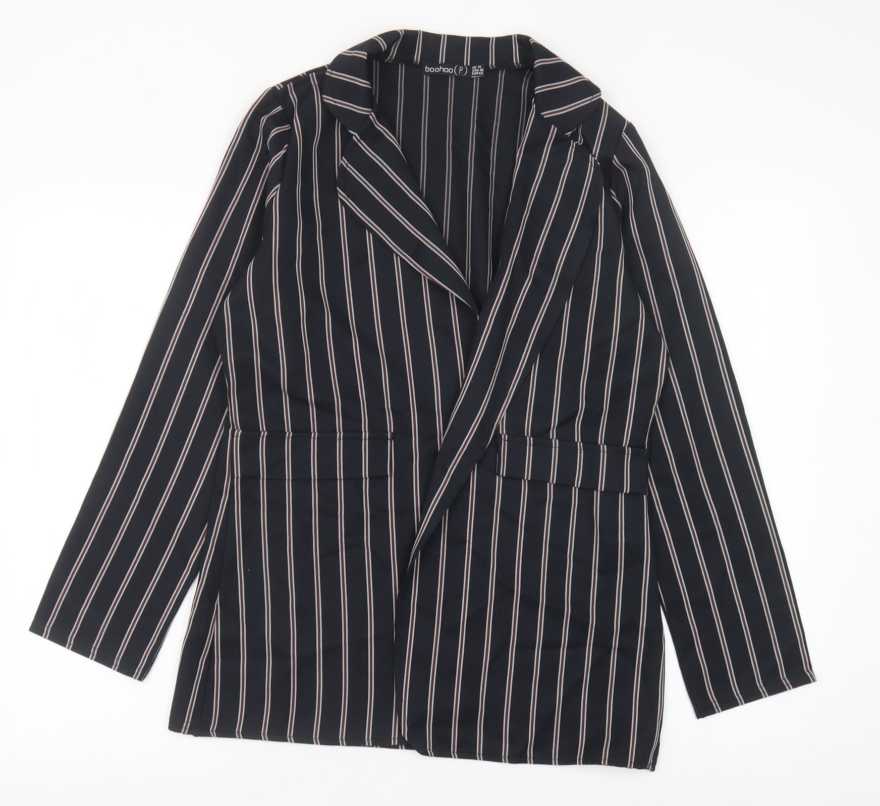 Boohoo Womens Black Striped Polyester Jacket Blazer Size 14