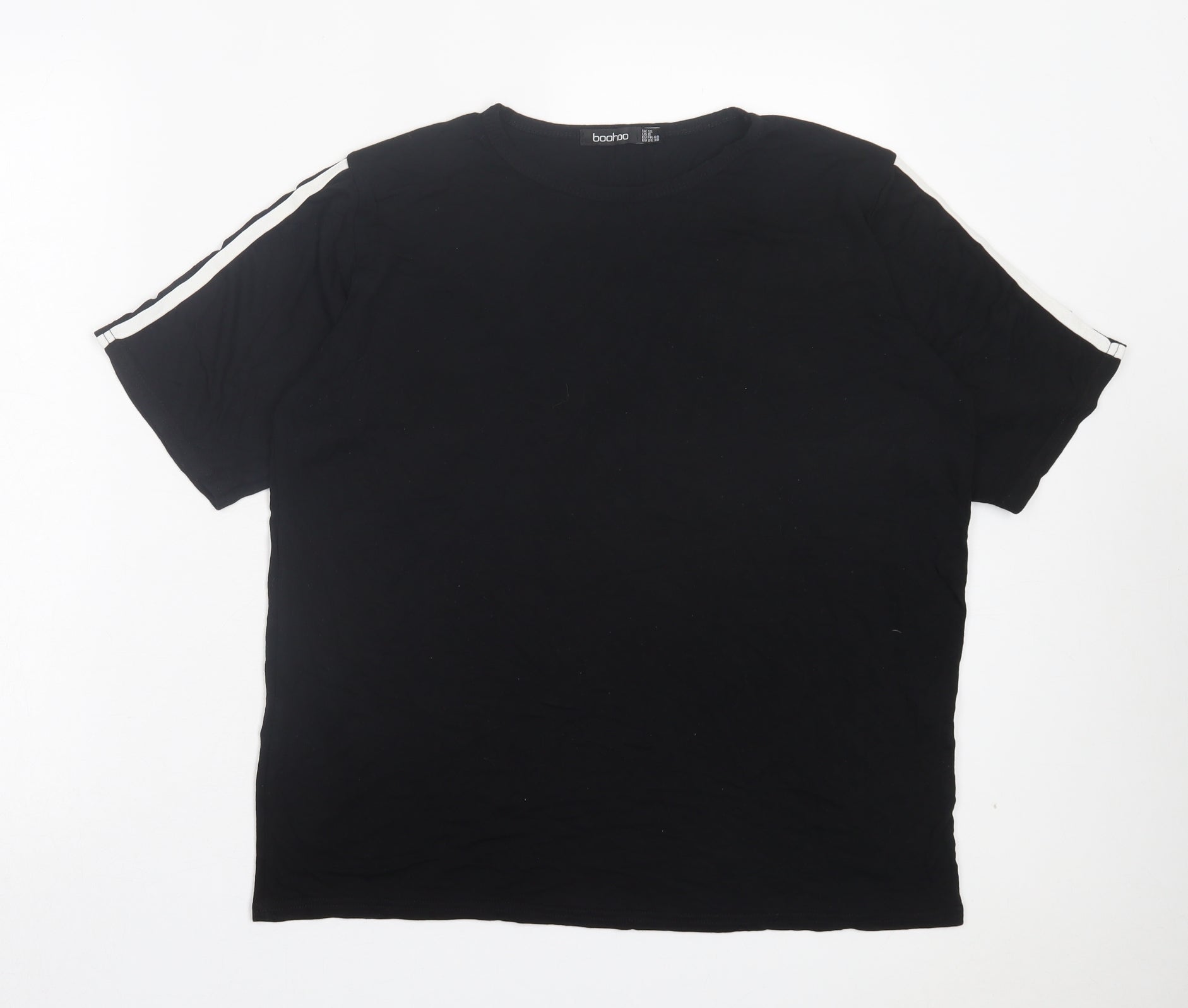 Boohoo Womens Black Striped Viscose Basic T-Shirt Size 12 Crew Neck