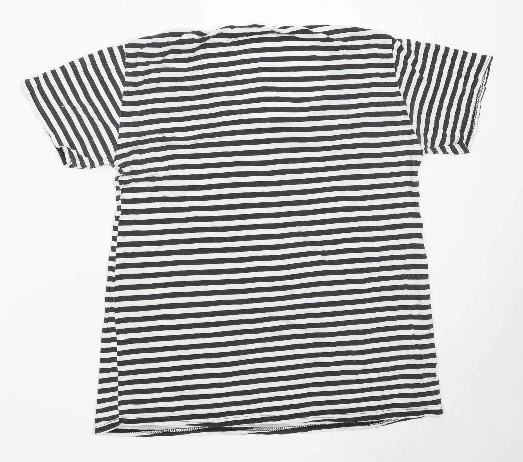 Boohoo Womens Black Striped Viscose Basic T-Shirt Size 12 Round Neck