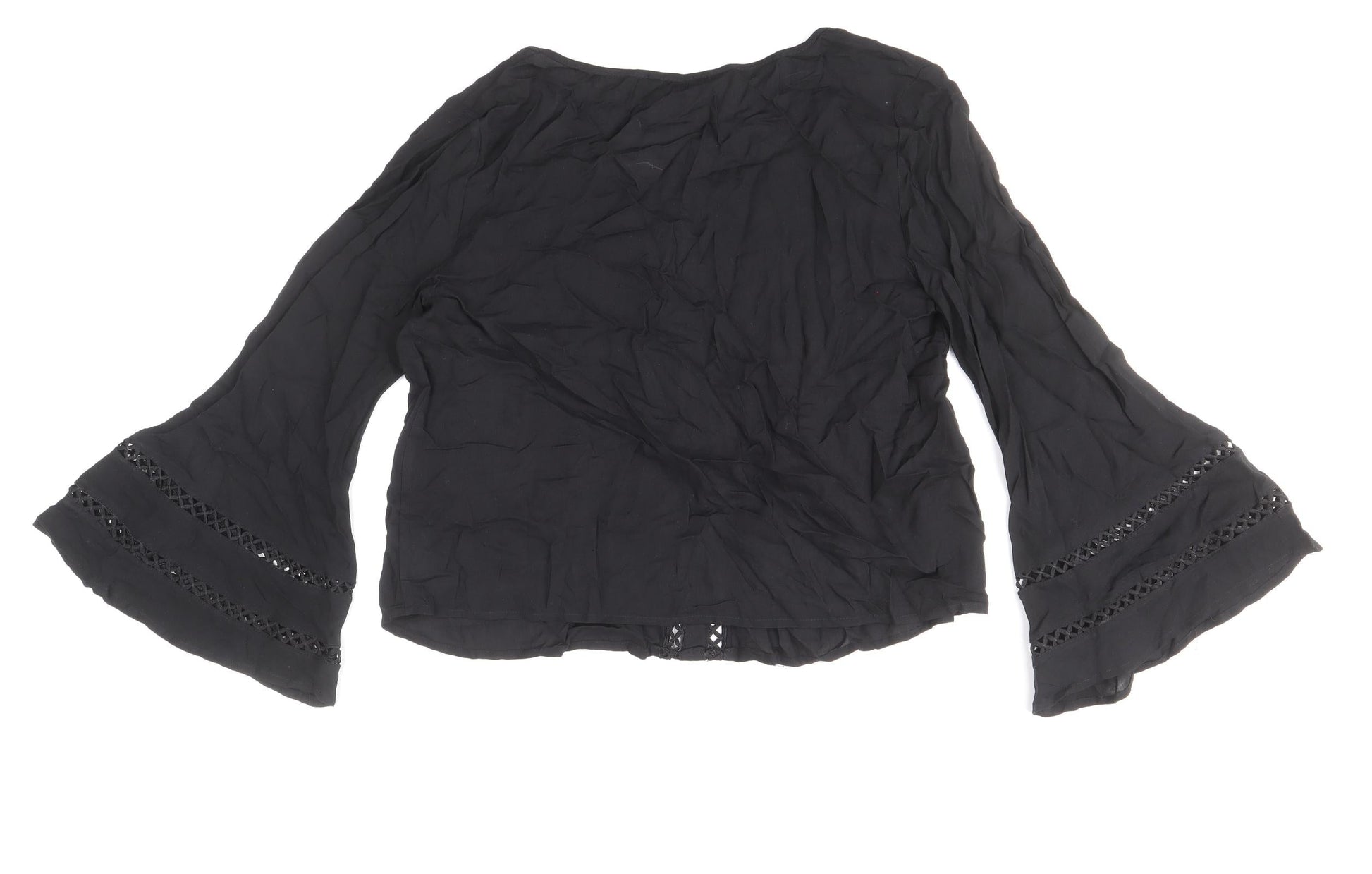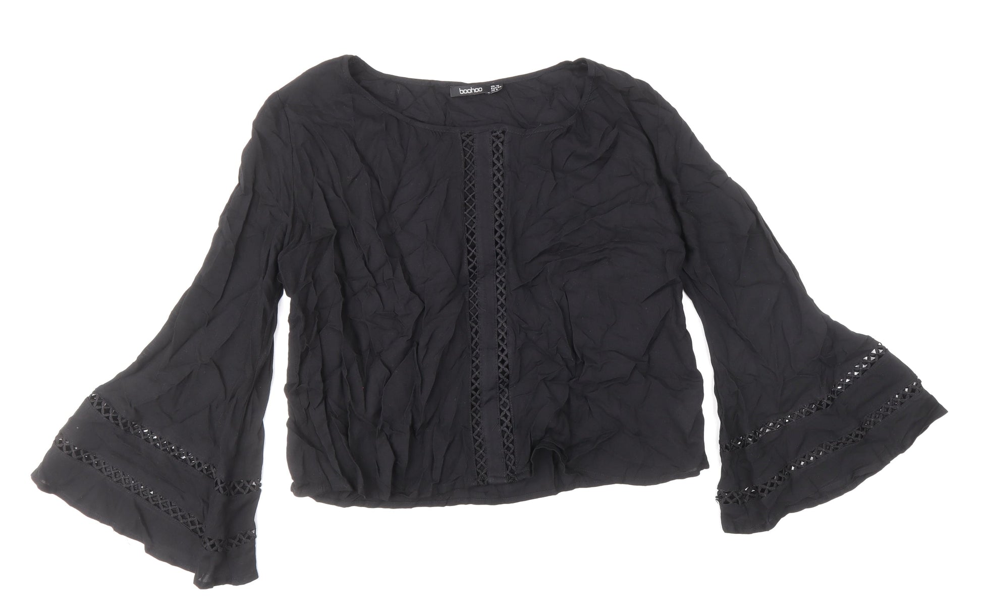 Boohoo Womens Black Viscose Basic Blouse Size 10 Boat Neck - Flute Sleeve