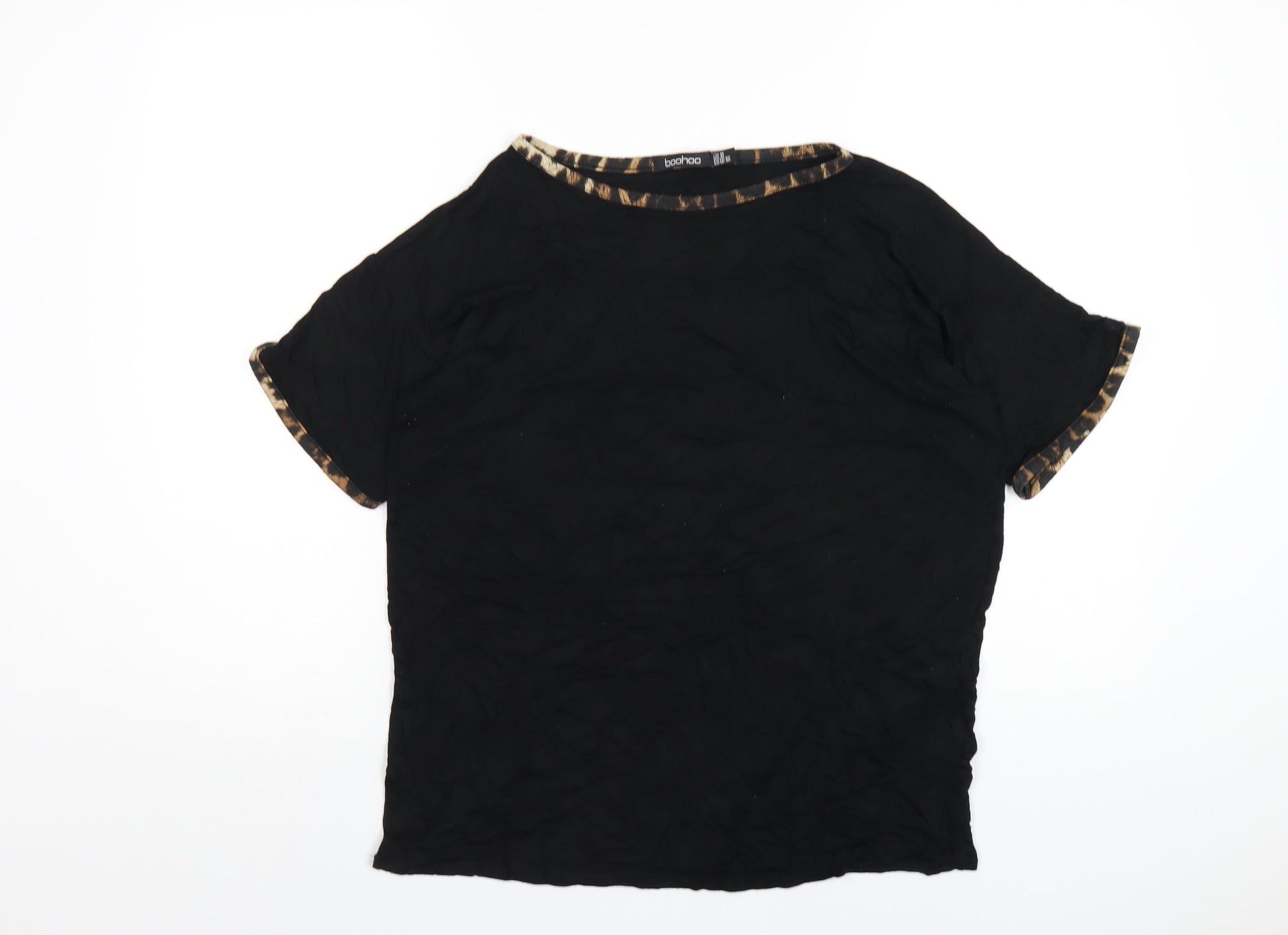Boohoo Womens Black Viscose Basic T-Shirt Size 14 Round Neck