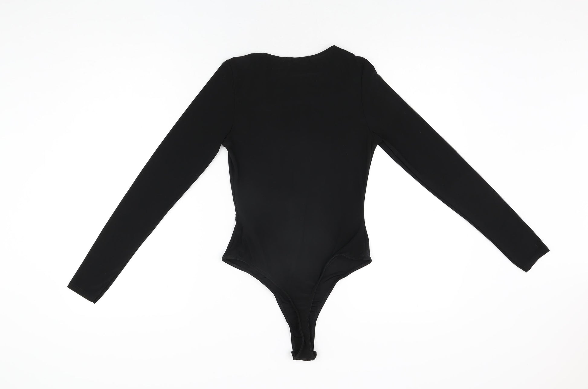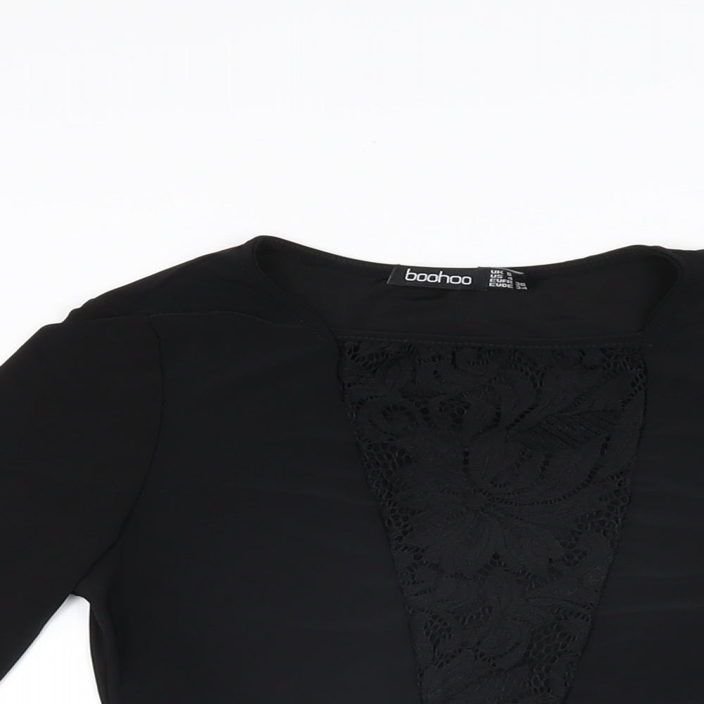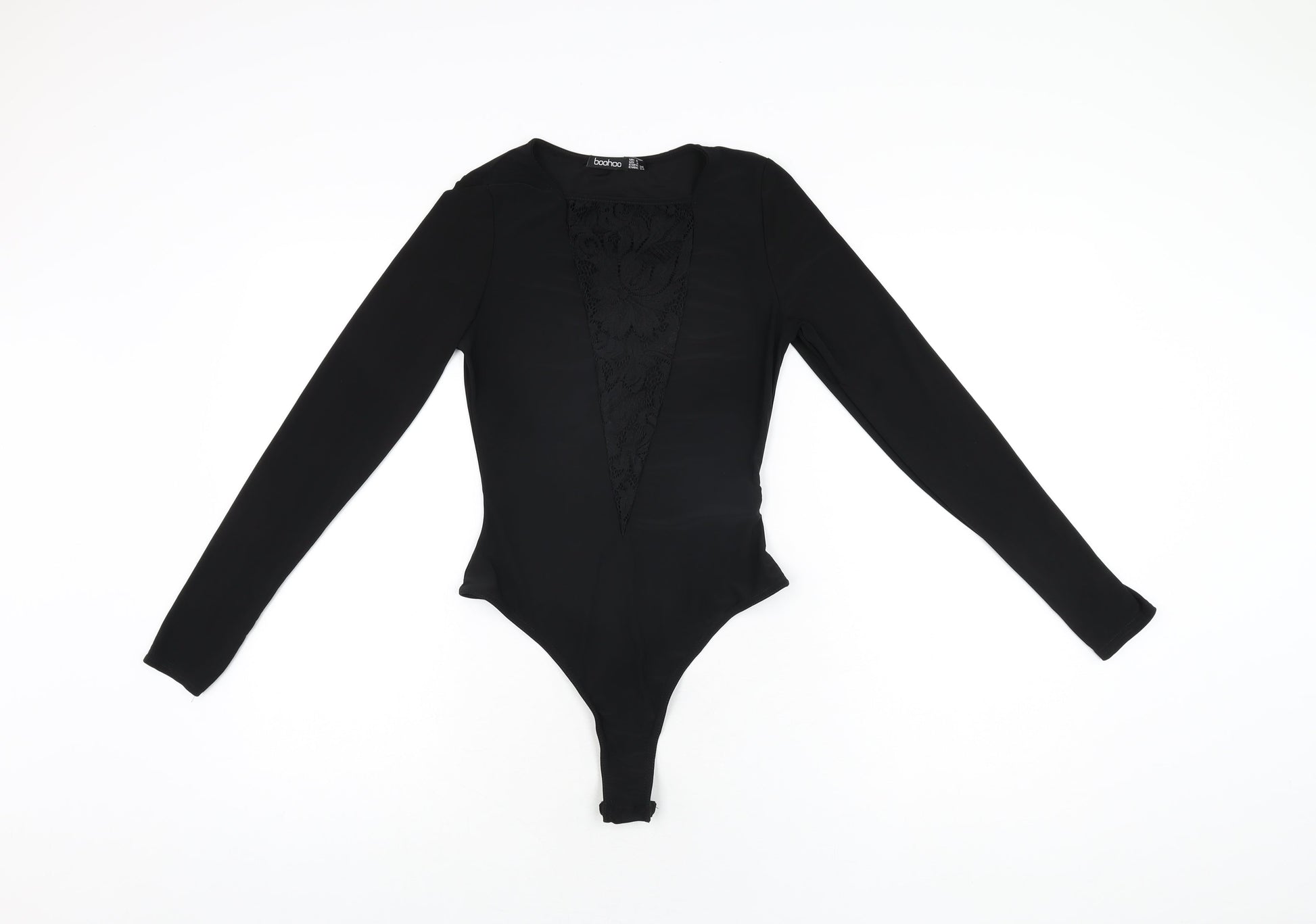 Boohoo Womens Black Viscose Bodysuit One-Piece Size 8 Snap