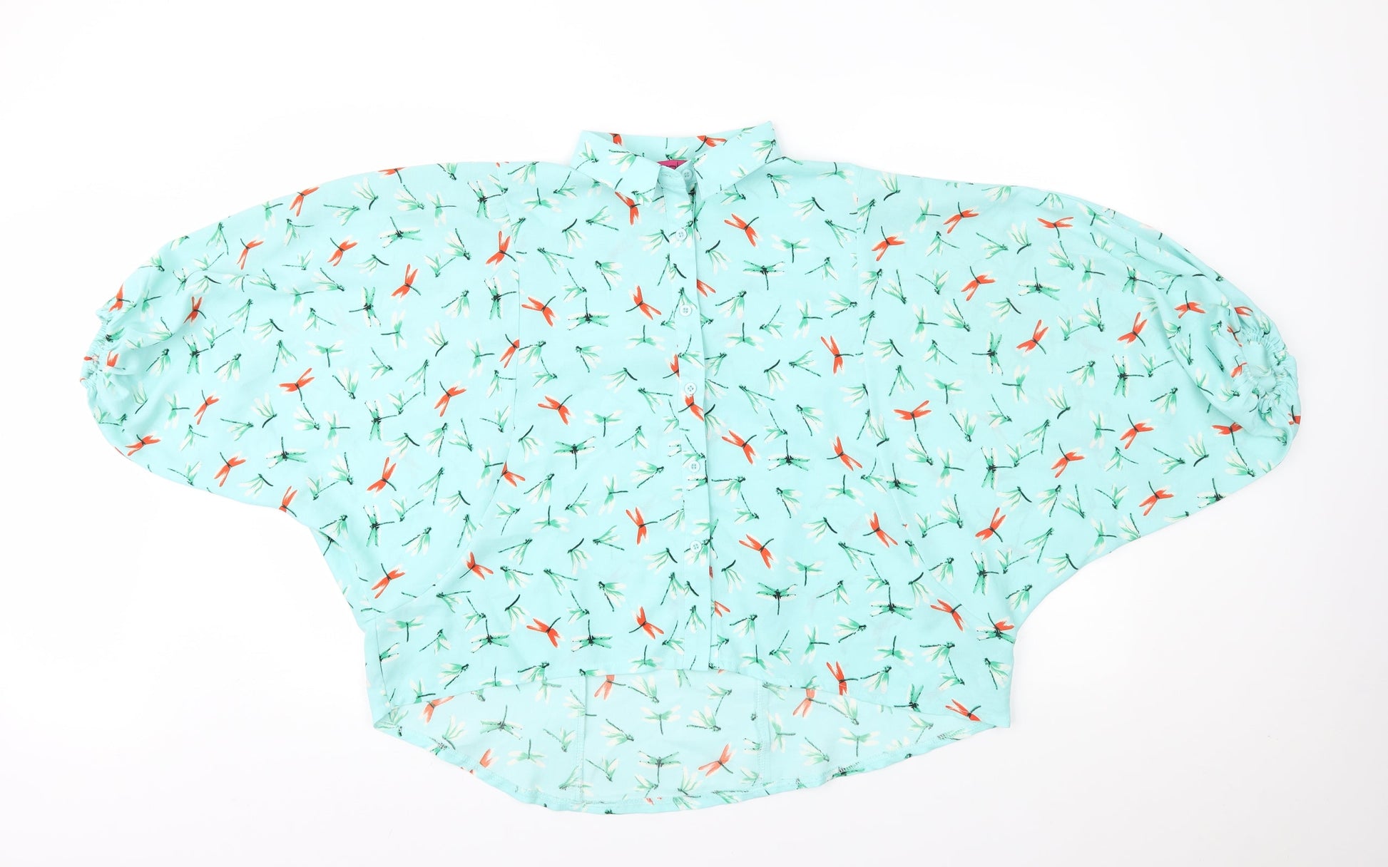 Boohoo Womens Blue Animal Print Cropped Button-Up Size 10