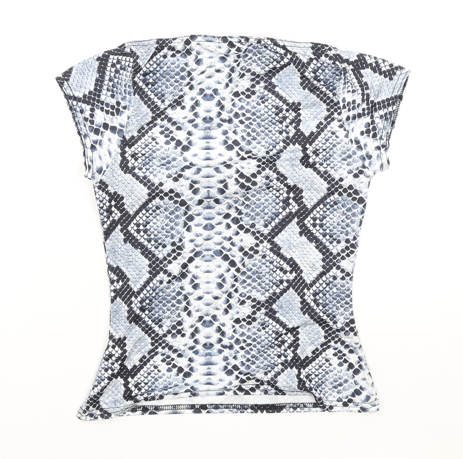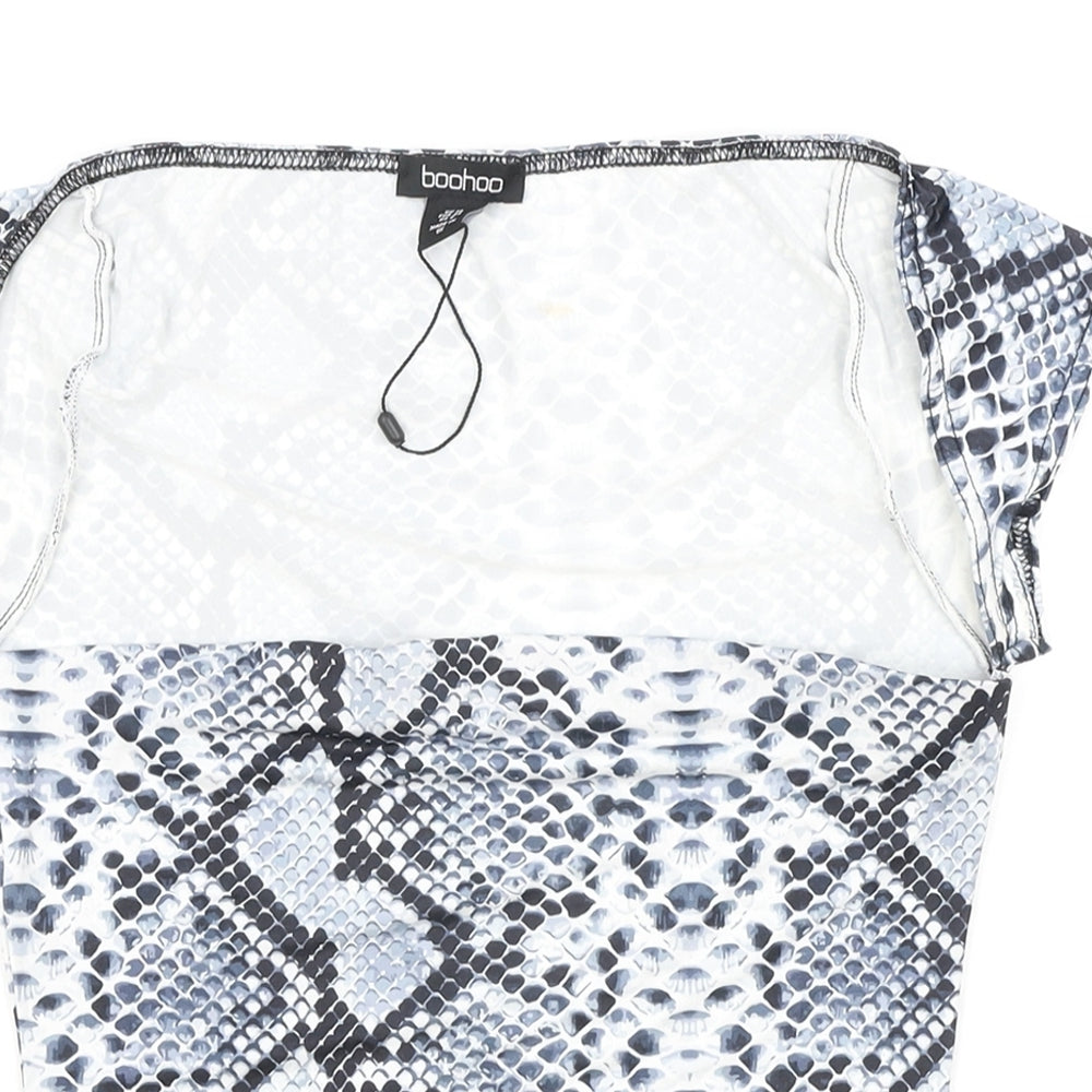 Boohoo Womens Blue Animal Print Polyester Basic T-Shirt Size 10 Square Neck - Snake Skin Print