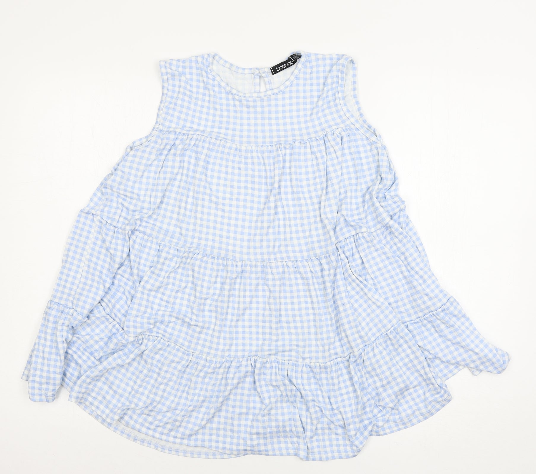 Boohoo Womens Blue Check Jersey Basic Blouse Size 12