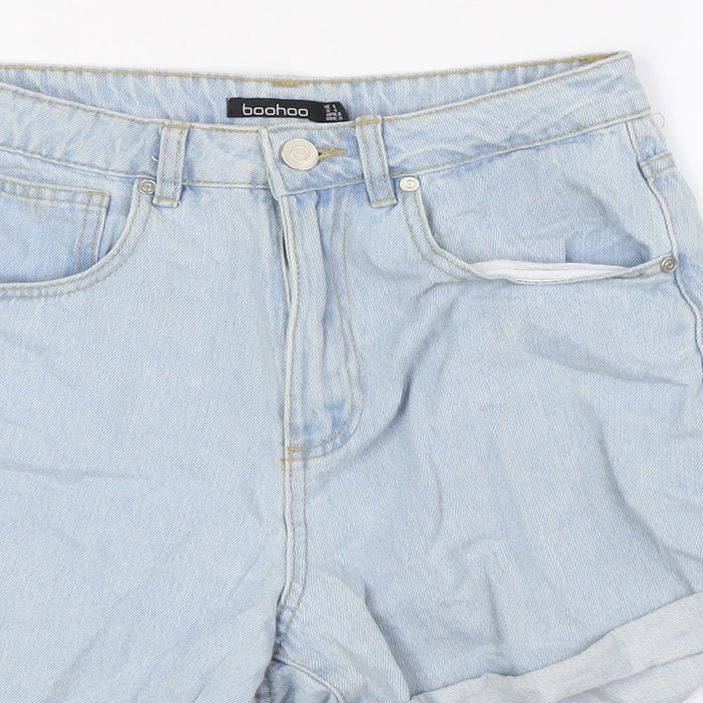 Boohoo Womens Blue Cotton Basic Shorts Size 8 L4 in Regular Button - turn ups