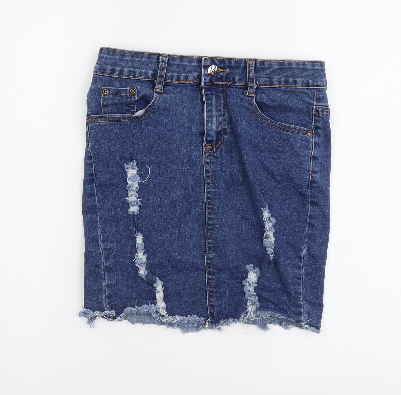 Boohoo Womens Blue Cotton Mini Skirt Size 8 Button - Distressed Look