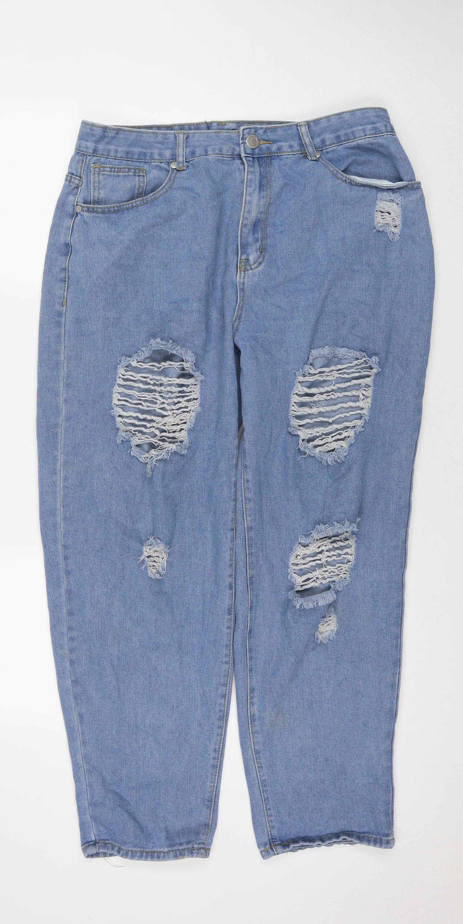 Boohoo Womens Blue Cotton Mom Jeans Size 16 L28 in Regular Zip