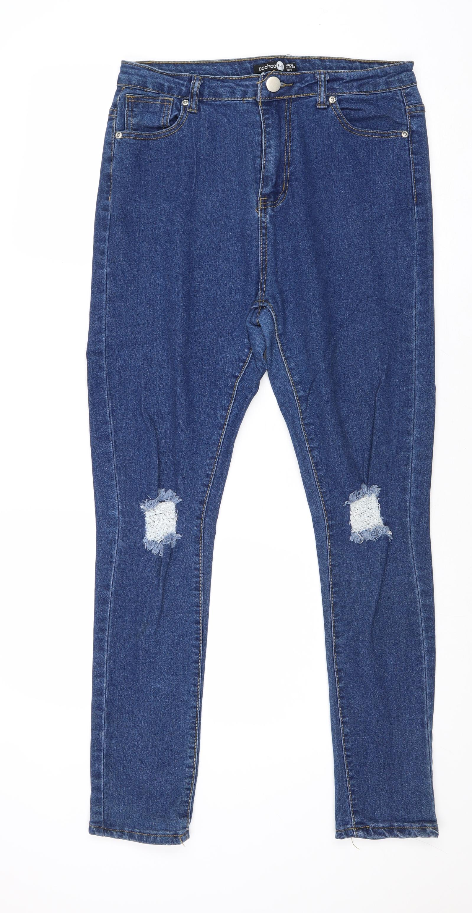 Boohoo Womens Blue Cotton Skinny Jeans Size 12 Regular Zip