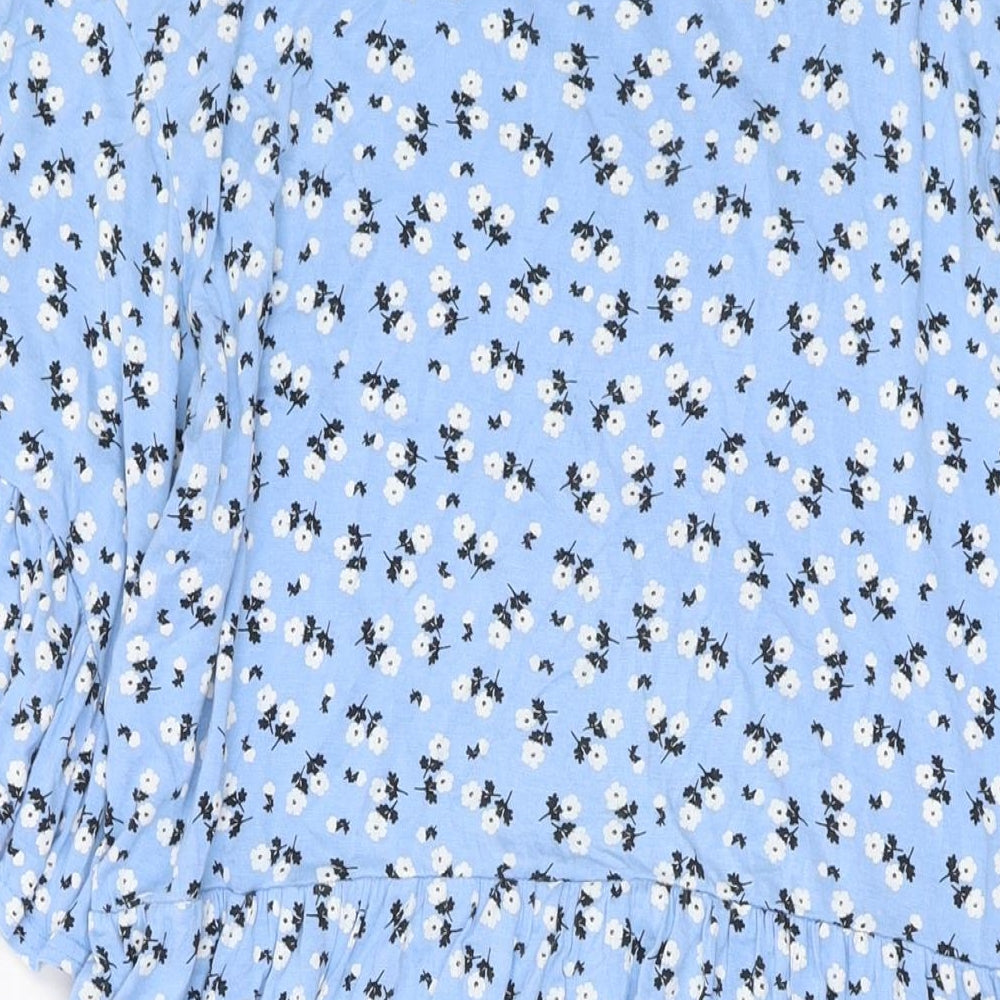 Boohoo Womens Blue Floral Viscose A-Line Size 14 Round Neck Pullover