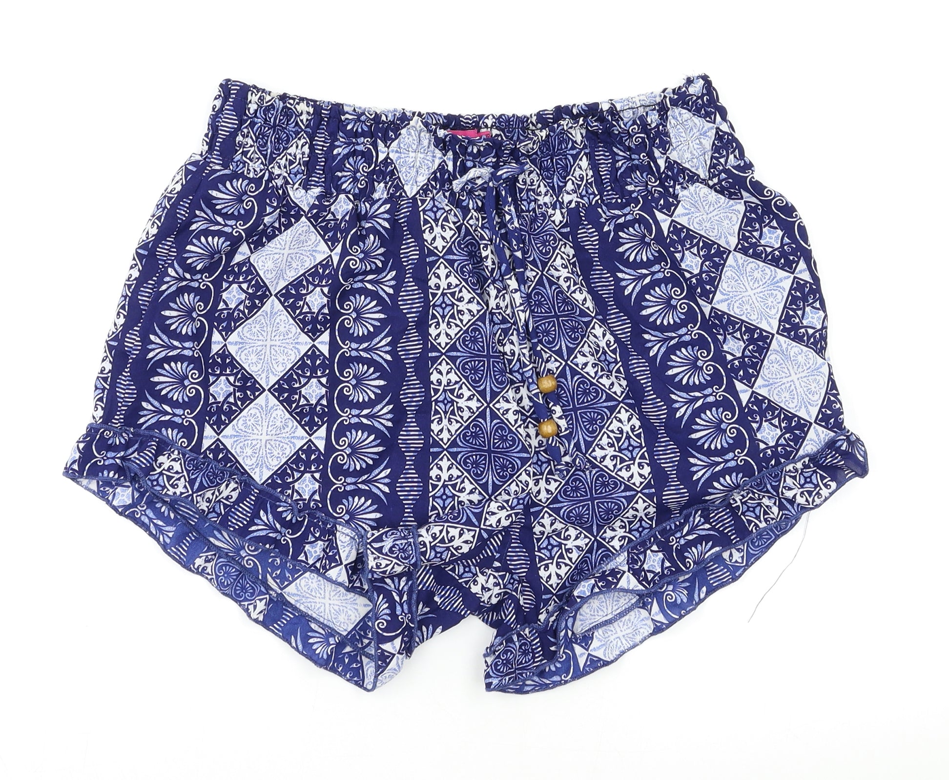 Boohoo Womens Blue Geometric Bermuda Shorts Size 10