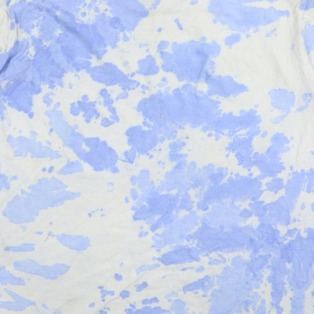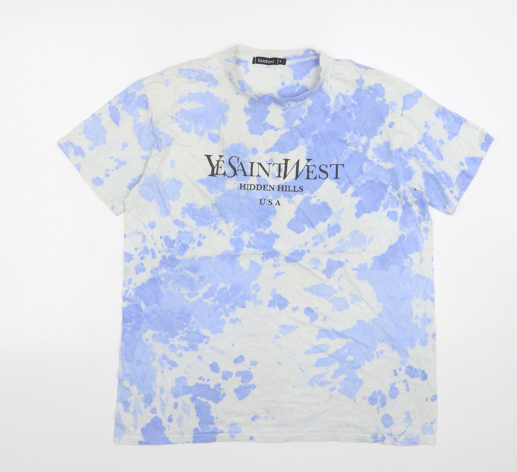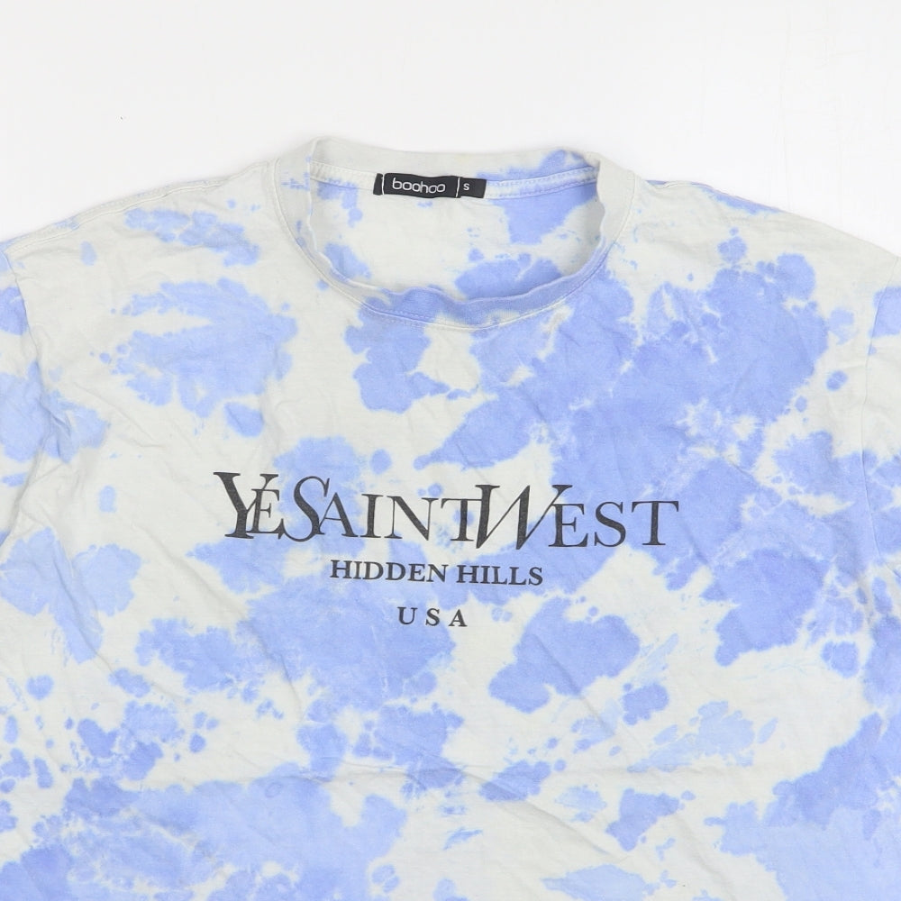 Boohoo Womens Blue Geometric Cotton Basic T-Shirt Size S Round Neck