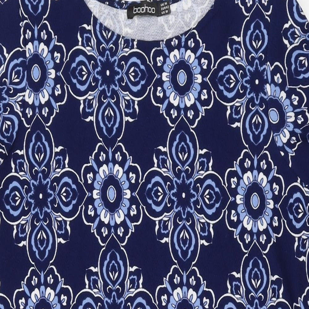 Boohoo Womens Blue Geometric Polyester A-Line Size 14 Round Neck Pullover