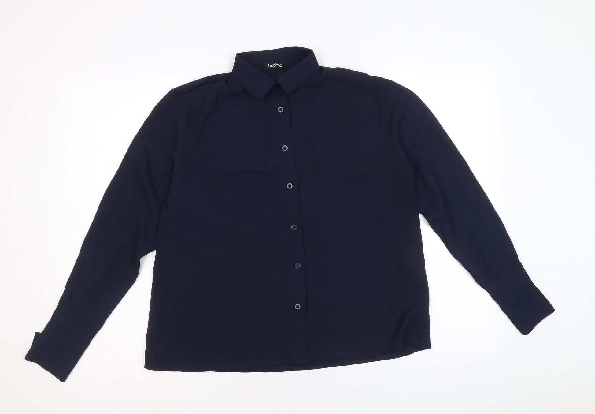 Boohoo Womens Blue Polyester Basic Button-Up Size L Collared