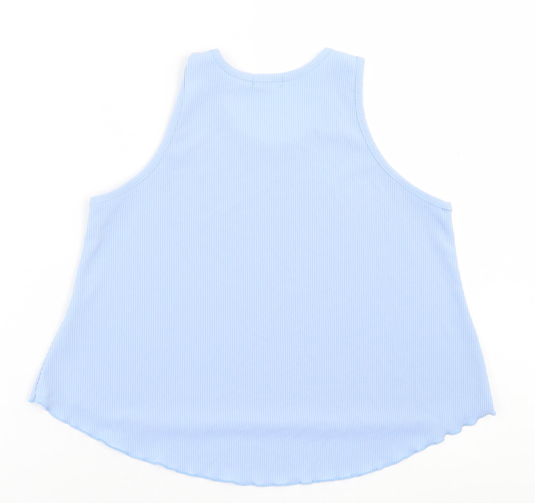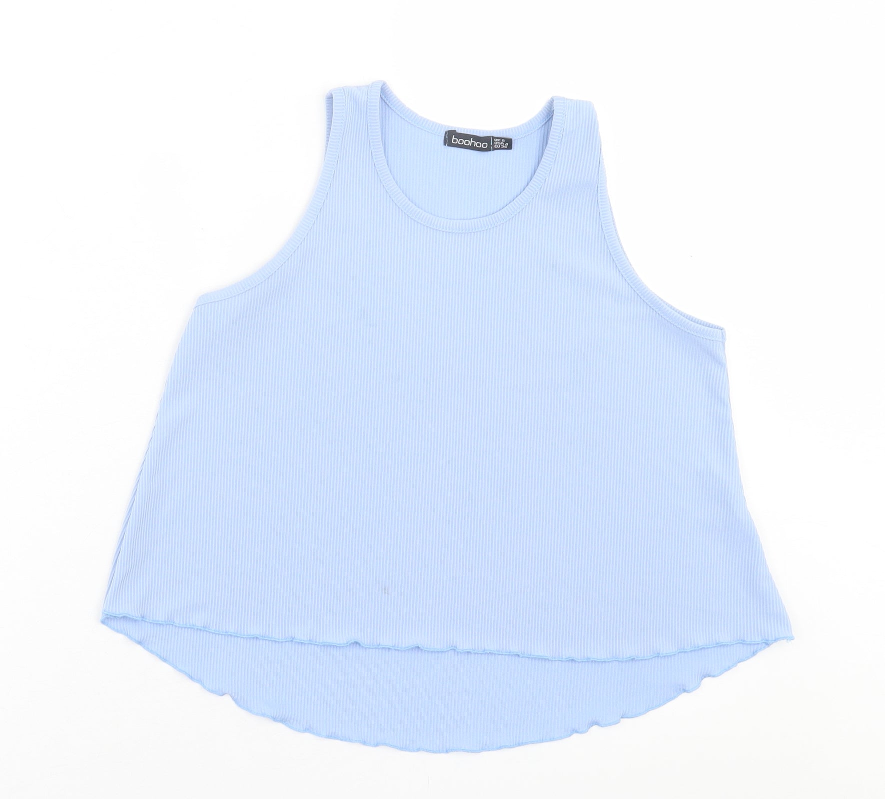 Boohoo Womens Blue Polyester Basic Tank Size 8 Crew Neck - Lettuce Edging