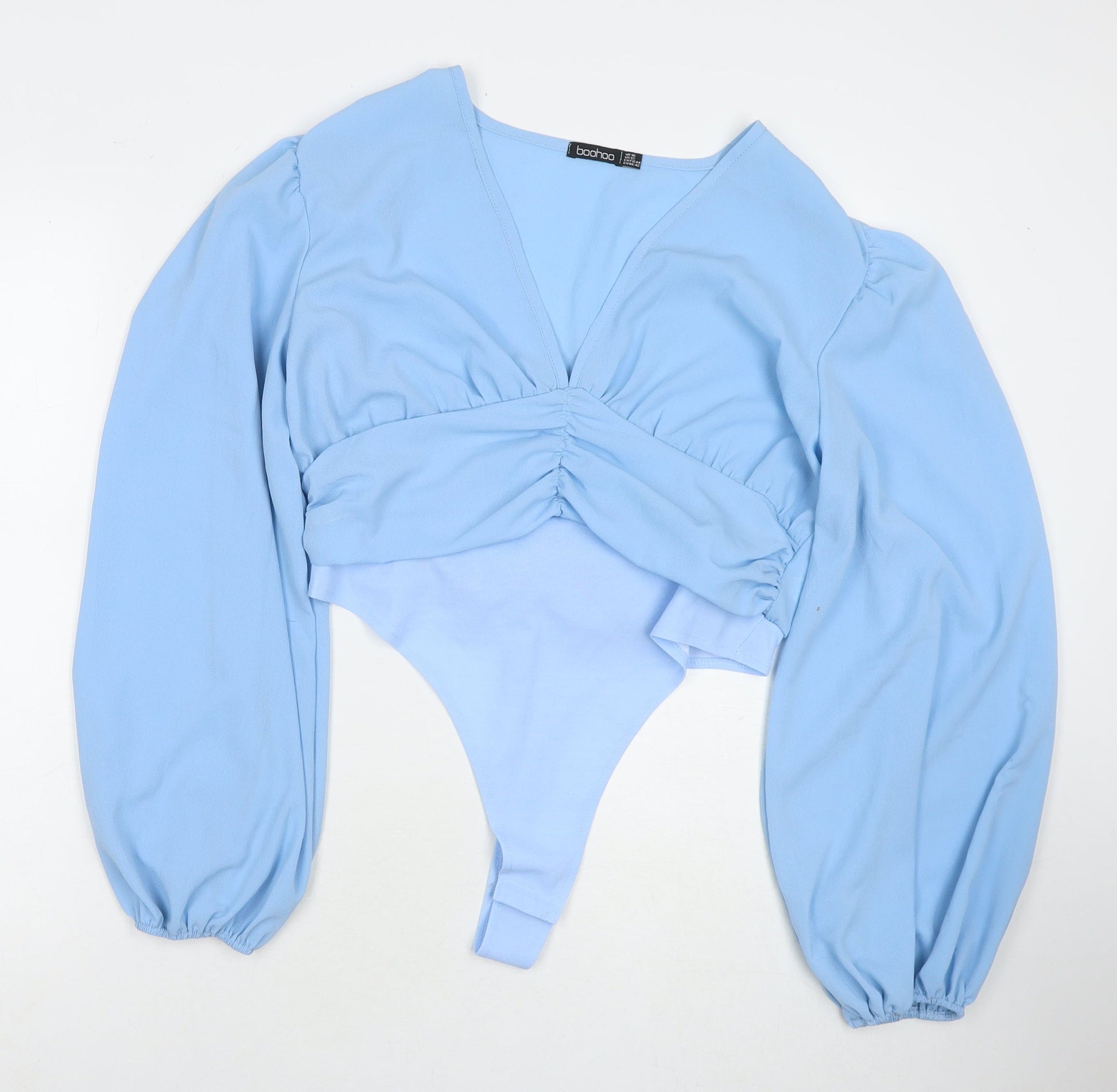 Boohoo Womens Blue Polyester Bodysuit One-Piece Size 16 Snap