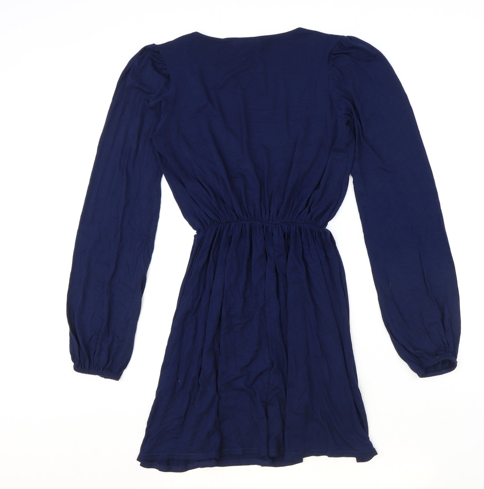 Boohoo Womens Blue Polyester Fit & Flare Size 10 V-Neck Pullover
