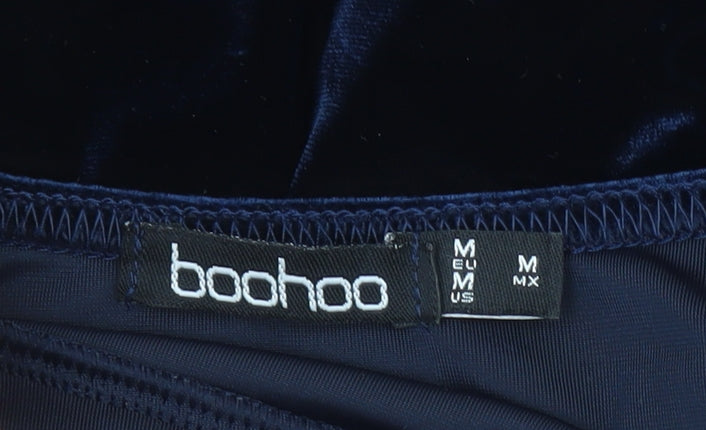 Boohoo Women's Blue Velvet Skater Party Dress M Strappy Sleeveless