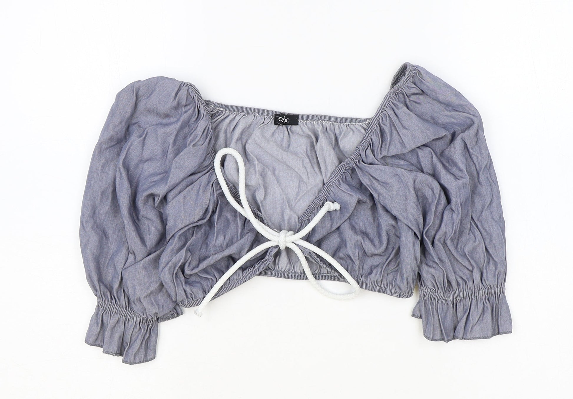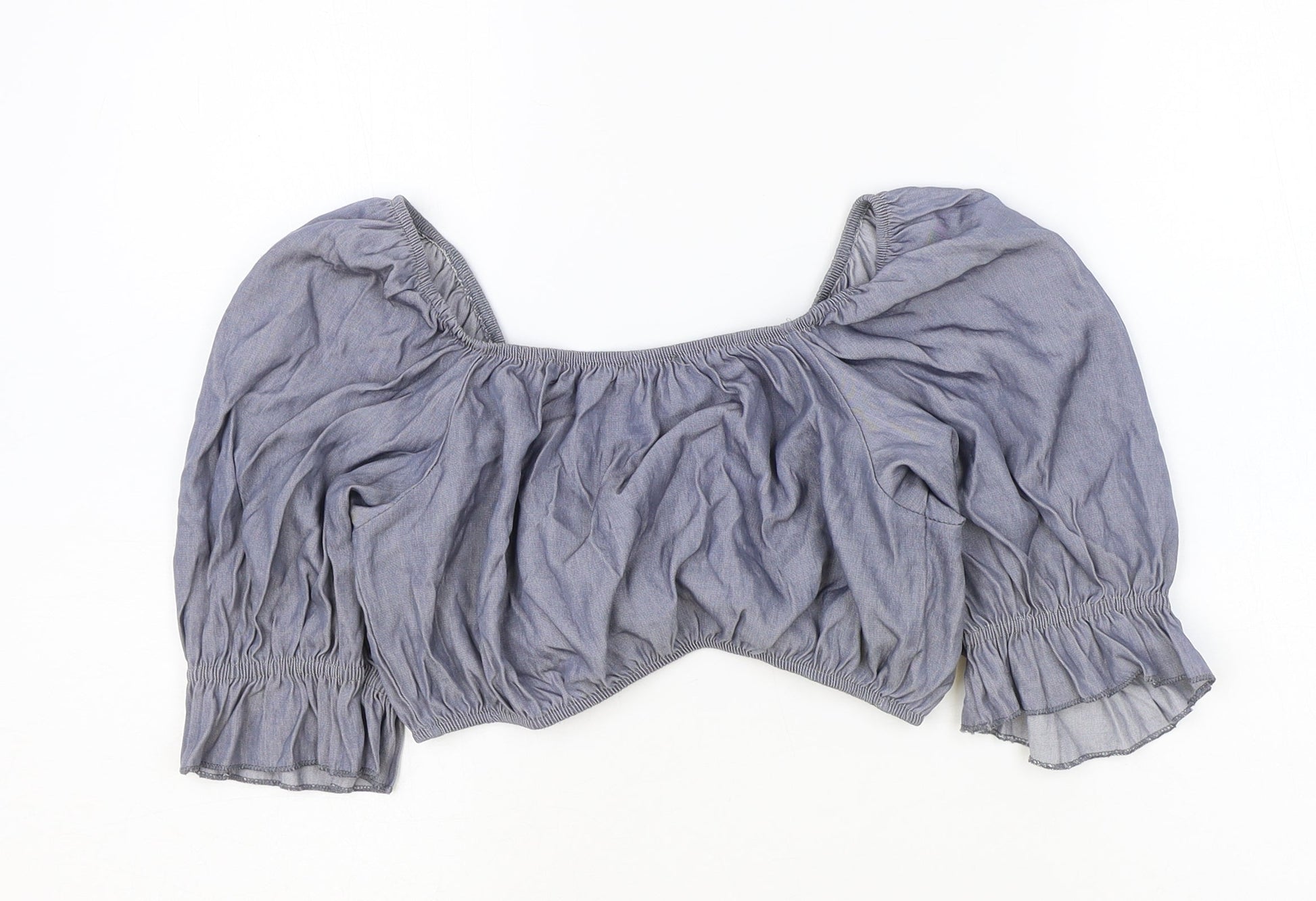 Boohoo Womens Blue Viscose Basic Blouse Size 12 V-Neck